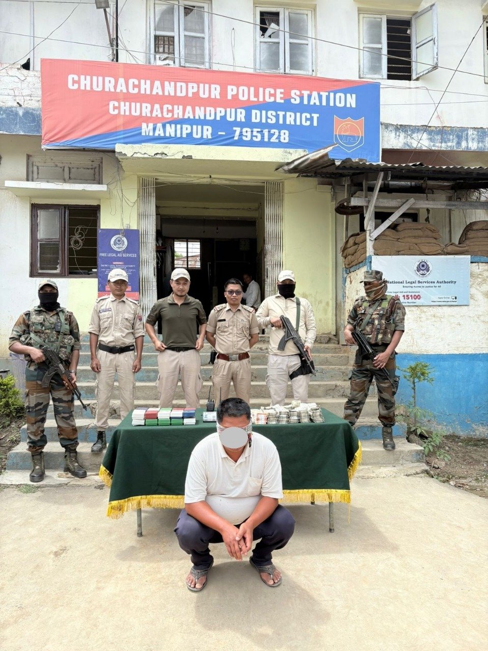 In a separate operation on Friday, police arrested a 46-year-old woman, identified as Chigenvung, from her residence in Tangnuam village. Authorities recovered 25 soap cases containing suspected Brown Sugar weighing 289 grams and Rs 8 lakh in cash.