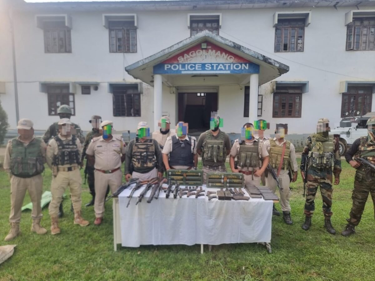 Security forces have recovered a significant cache of arms and ammunition from several locations in Manipur, including Champhai Hill in Imphal East District, Khelakhong in Imphal West District, Kangvai in Churachandpur District, and Gelbung village in Bishnupur District.