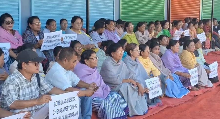 A sit-in protest was held today in front of the United Committee Manipur (UCM) office at Lamphel to condemn the twin bomb attack that targeted the office yesterday evening. The location also serves as the office for the Coordinating Committee on Manipur Integrity (COCOMI). Fortunately, no casualties were reported in the incident.