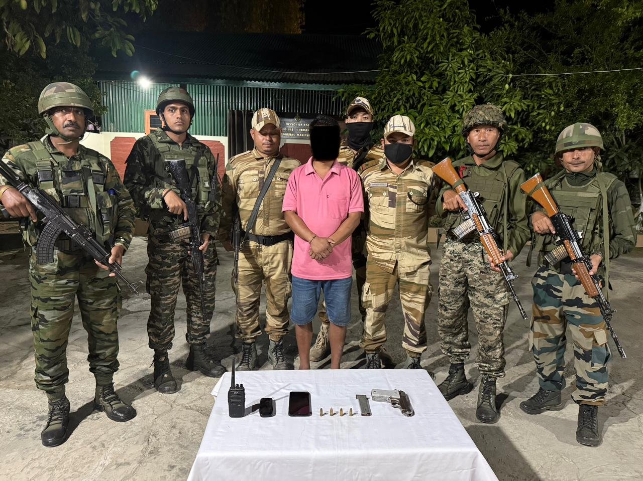 In a separate operation, an active cadre of the outlawed Kangleipak Communist Party (KCP-Taibanganba) was arrested from Langthabal Khunou in Thoubal district. Identified as Konjengbam Akash Singh (29), he was reportedly involved in extensive extortion activities targeting brick fields, sawmills, banks, hospitals, educational institutions, oil pumps, shops, timber trucks, stone crushers, and contractors in the district. A 9 mm pistol, one magazine, and four live rounds were recovered from him.