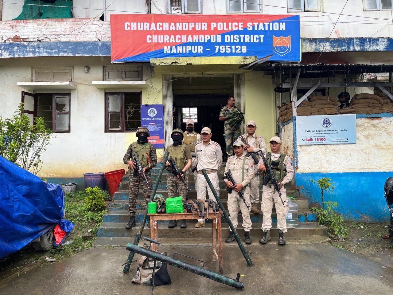 During one such operation in the general area of Khuangmun under Churachandpur Police Station, security personnel recovered a cache of arms and explosives. The seized items included a .303 rifle with an empty magazine, four single barrel guns, three modified long-range mortars, two improvised explosive devices (IEDs) weighing three kilograms and one kilogram respectively, two live Pompi rounds, two bulletproof jackets with plates, a helmet, two ammunition pouches, and a Baofeng radio set.