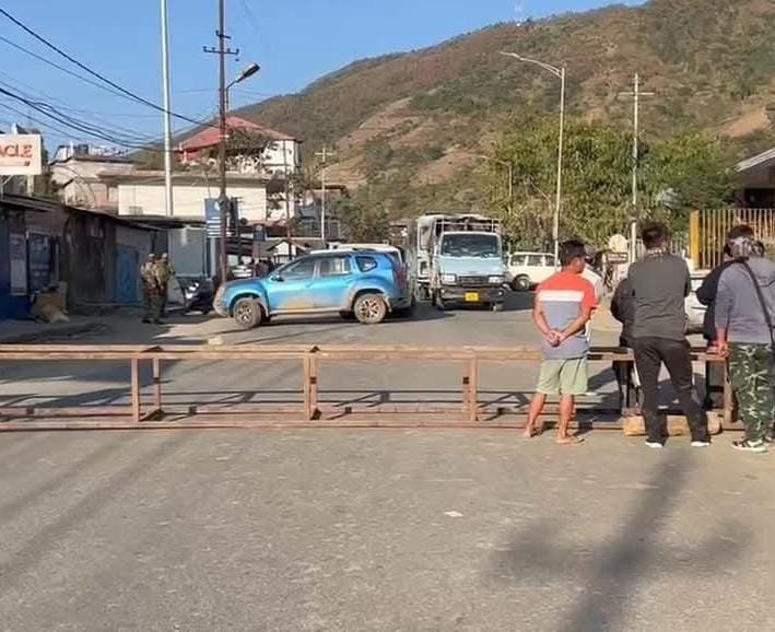 A total shutdown is underway across Kangpokpi district, accompanied by sit-in protests at key locations, including Kangpokpi, Keithelmanbi, Saparmeina, Gamgiphai, and Motbung. The demonstrations are part of ongoing demands for the removal of security forces from the Saibol area.