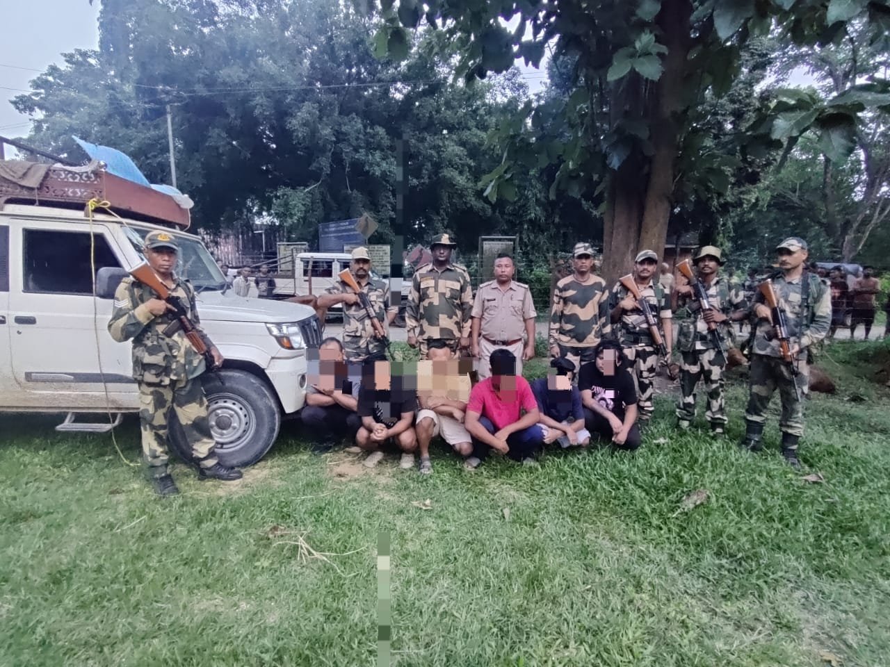 In a joint operation near the international border in West Garo Hills, BSF Meghalaya troops and local police apprehended seven Indian nationals.