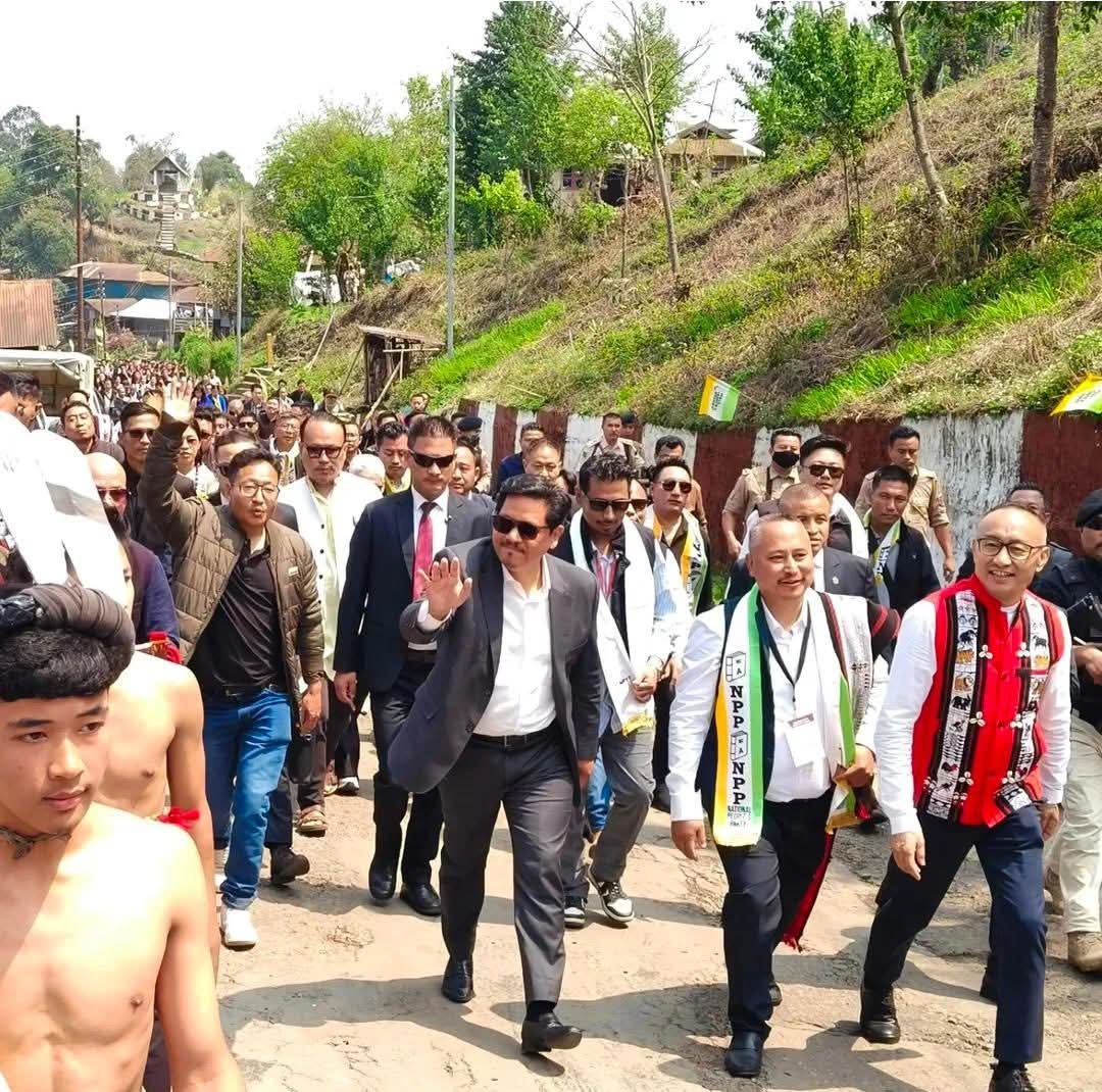 Conrad Sangma on Thursday visited Longkhum village in Nagaland to campaign in support of National People’s Party (NPP) candidate I Abenjang, who is contesting from the 28 Koridang Assembly Constituency.
