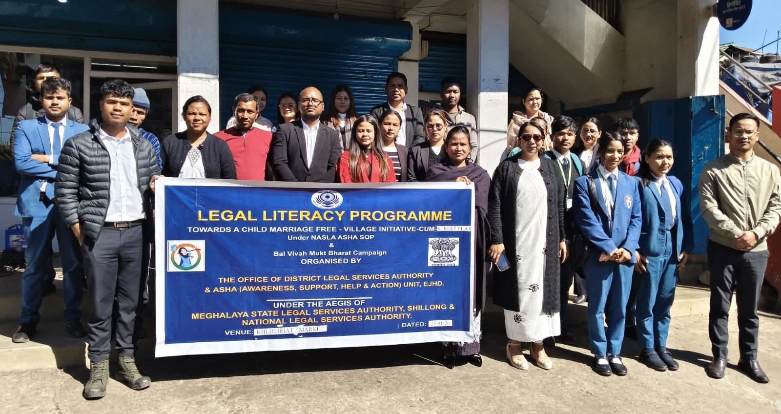 Shillong, Jan 23: The District Legal Services Authority (DLSA), East Jaintia Hills, in collaboration with the ASHA Unit, organized a Legal Literacy Programme-cum-Street Play today to raise awareness on the Prevention of Child Marriage. The initiative, under the Meghalaya State Legal Services Authority (MSLSA) and National Legal Services Authority (NALSA), aimed to educate communities on legal provisions and foster participation in building a child marriage-free society.