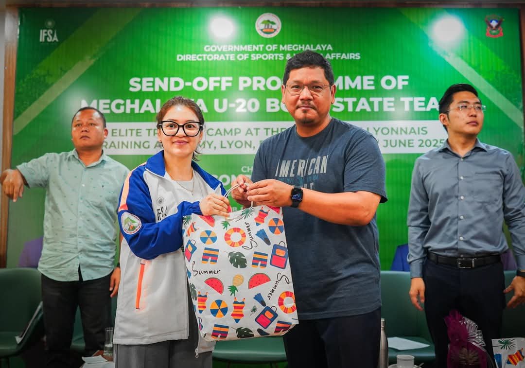 Shillong, Jun 2: Meghalaya Chief Minister Conrad Sangma on Monday attended the send-off ceremony for the state’s Under-20 Boys’ Football Team, who are set to participate in the Elite Training Camp at the Olympique Lyonnais Training Academy in Lyon, France.