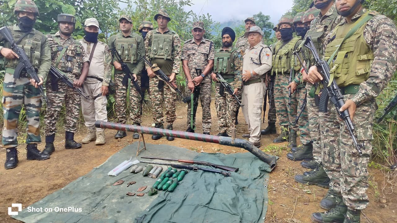 In a separate operation conducted in the Nepali Basti area of Churachandpur district, security forces seized two single-barrel rifles, two country-made grenades, three country-made shells, eight country-made mortars, and 25 cartridges.