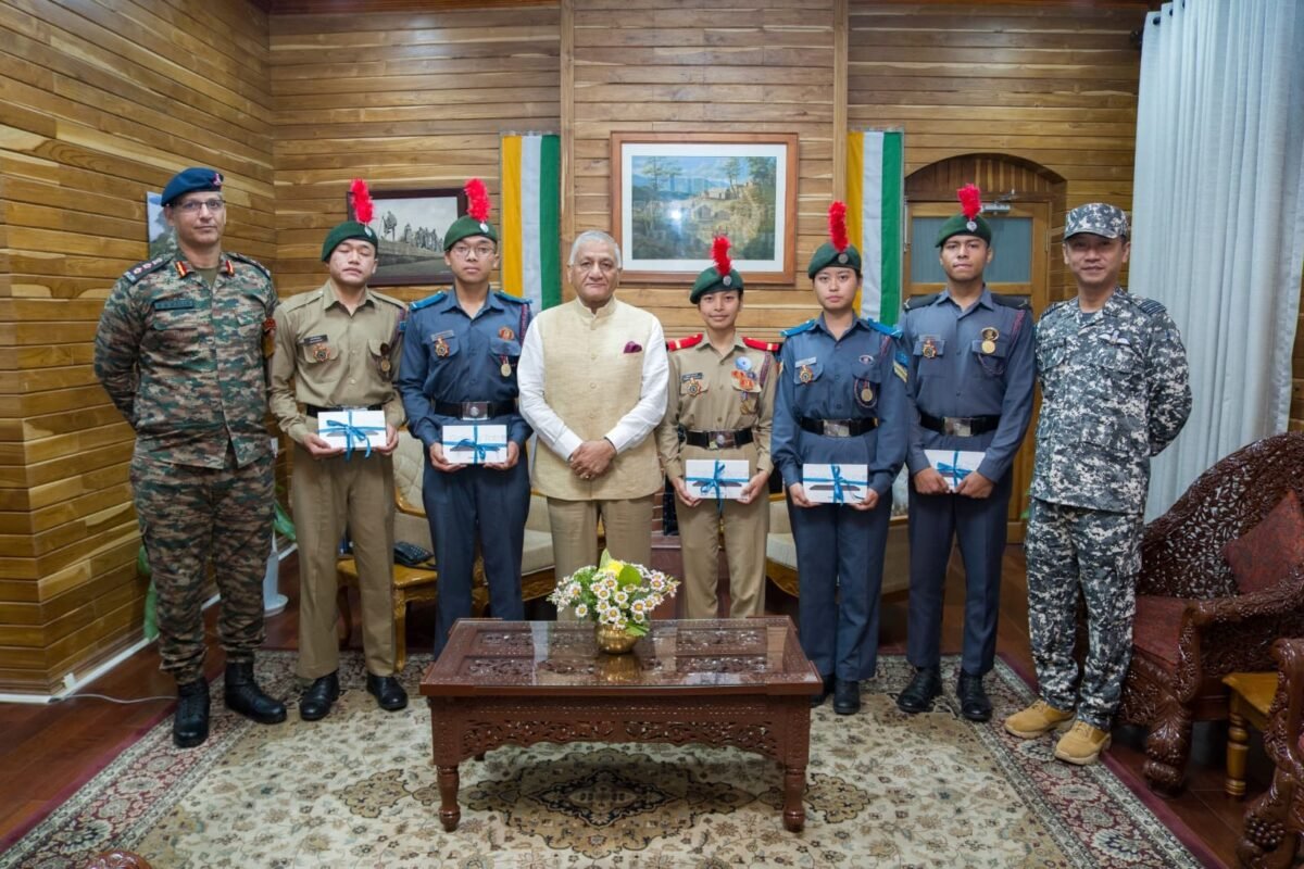 Aizawl, Apr 3: Mizoram Governor, General (Dr) Vijay Kumar Singh, PVSM, AVSM, YSM (Retd), honored six NCC cadets from Mizoram on Thursday for their participation in the Republic Day Camp (RDC) 2025 in New Delhi. In recognition of their achievement, the Governor presented each cadet with a tablet during a felicitation ceremony held at Raj Bhavan.