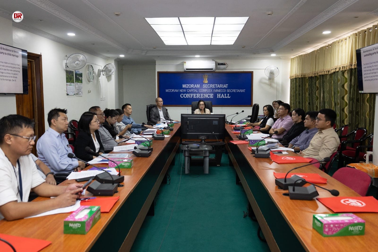 Aizawl, july 16: The Directorate of Women and Child Development, Government of Mizoram, convened the 2nd Review Meeting cum Sensitization Programme on the Prohibition of Child Marriage Act (PCMA), 2006, on Tuesday at Secretariat Conference Hall No. 1 in Aizawl. The meeting was chaired by Pi Lalzarmawii, Commissioner and Secretary, Social Welfare, Tribal Affairs, Women and Child Development Department.