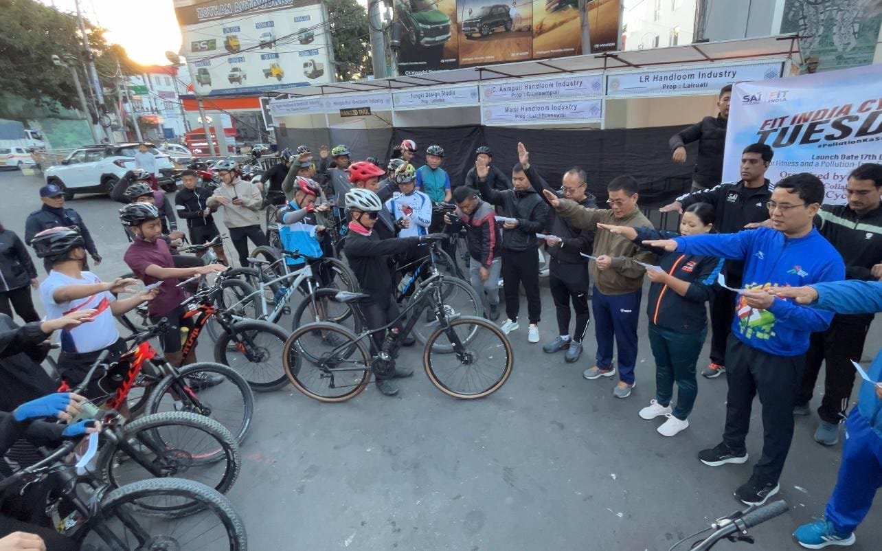 Aizawl, Dec 17: Mizoram today launched the ‘Fit India Cycling Tuesday Campaign’ as part of the nationwide Fit India Movement, which aims to promote physical fitness and environmental sustainability. The initiative, inaugurated by Union Sports Minister Mansukh Mandaviya in New Delhi, was simultaneously rolled out across all states and union territories.