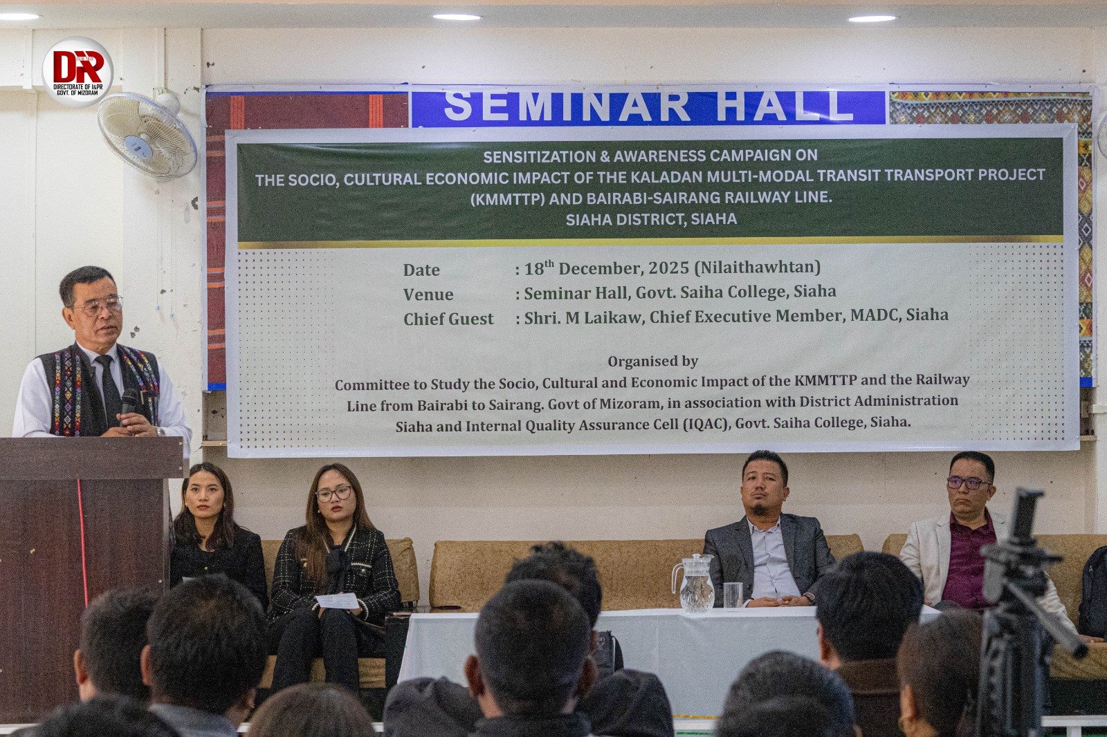 Siaha, Dec 18 : A seminar on the possible social, cultural, and economic impacts of the Kaladan Multi-Modal Transit Transport Project (KMMTTP) Road and the Bairabi–Sairang Railway Line was held today at the Seminar Hall, Government Siaha College. S. Lalremtuanga, Deputy Chief Executive Member (Dy. CEM), MADC, attended the programme as the Chief Guest.