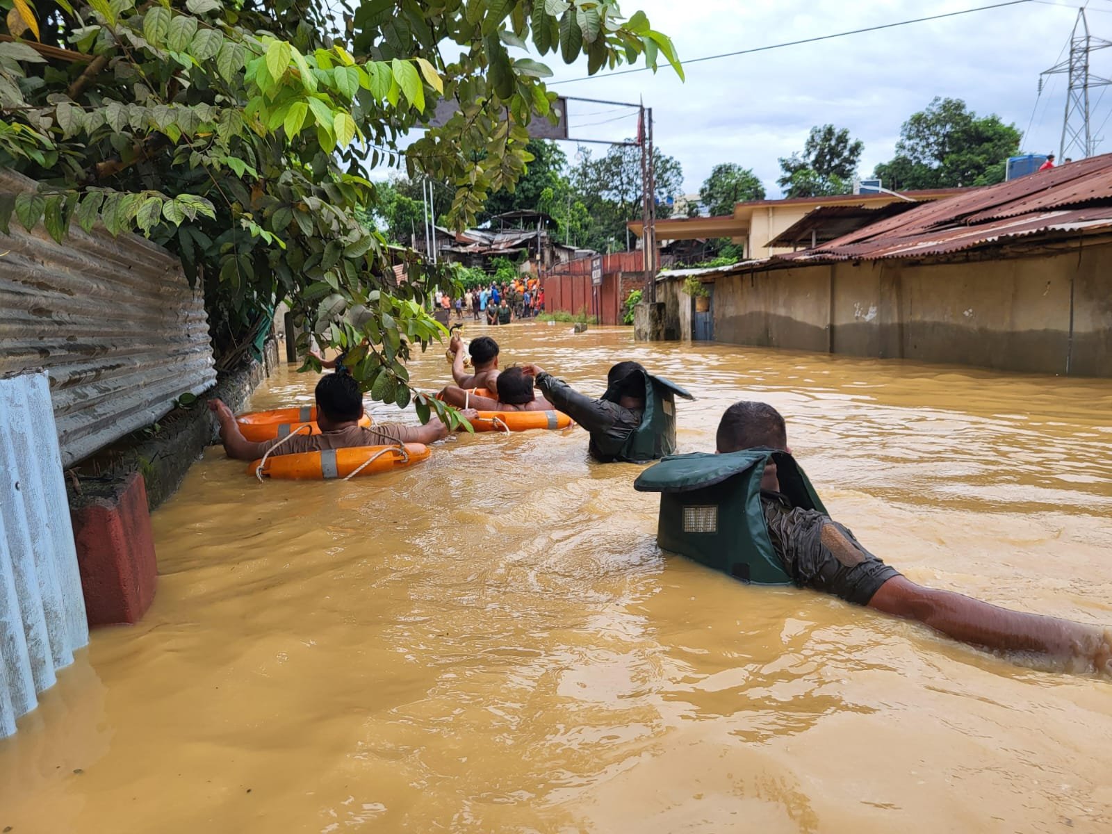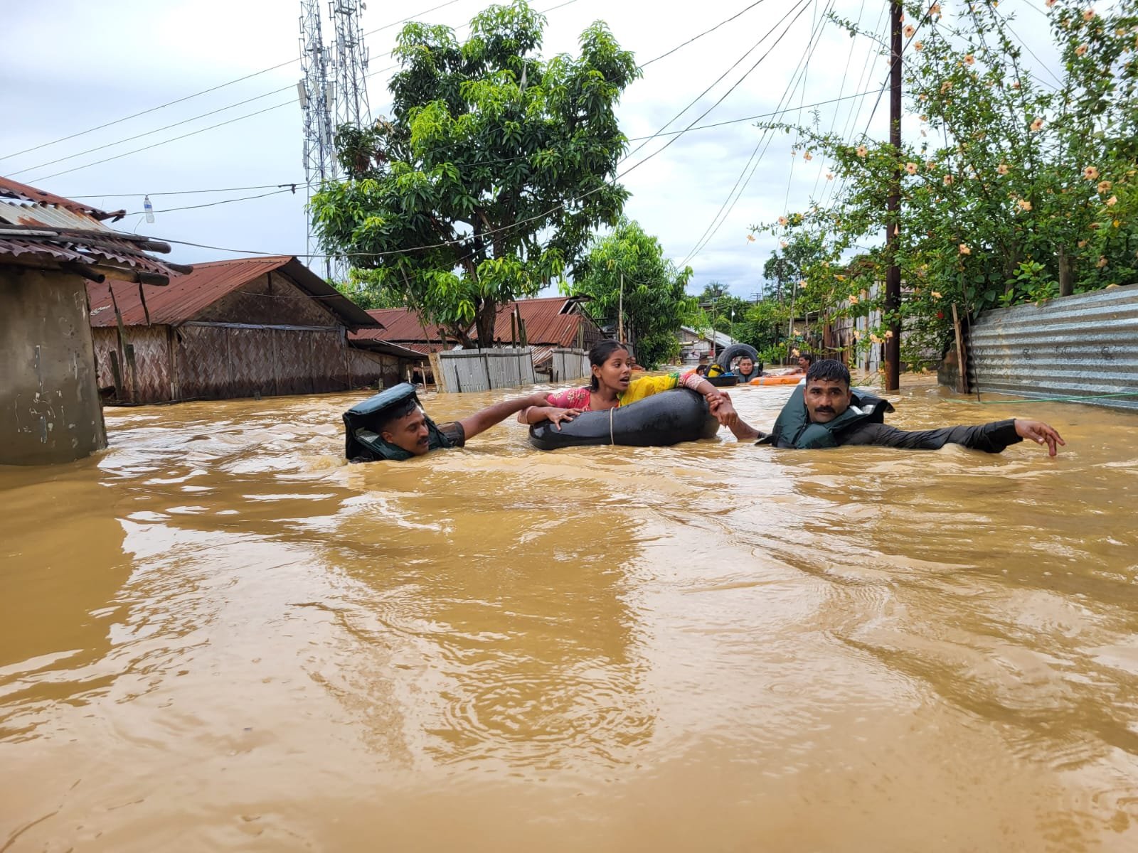 In a coordinated flood relief operation, the Assam Rifles, Indian Army, and State Disaster Response Force (SDRF) rescued 33 civilians from inundated areas of Vilhume Colony and SM Colony in Dimapur.