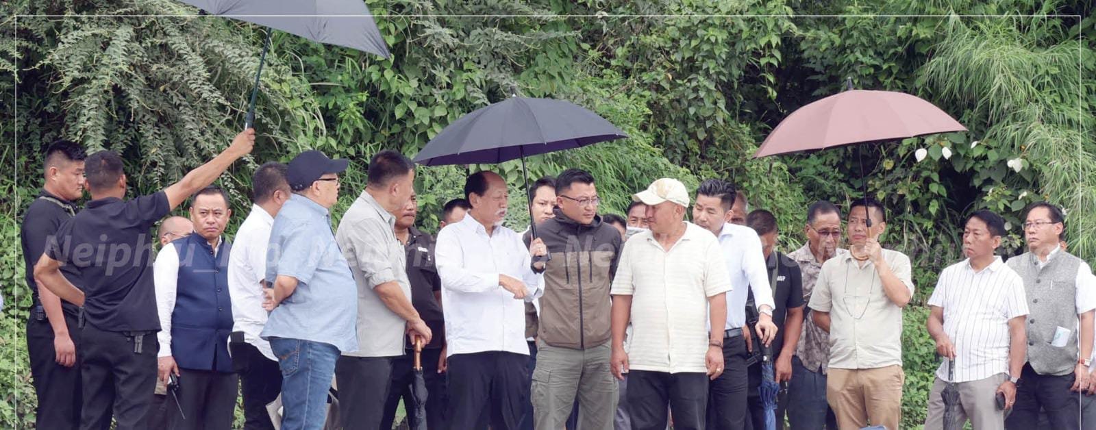 Nagaland Chief Minister Neiphiu Rio, along with Deputy Chief Minister T.R. Zeliang, on Monday visited the landslide-affected area near the old Kohima Municipal Council (KMC) dumping site along National Highway-29. The visit aimed to assess the extent of damage and ongoing restoration efforts.