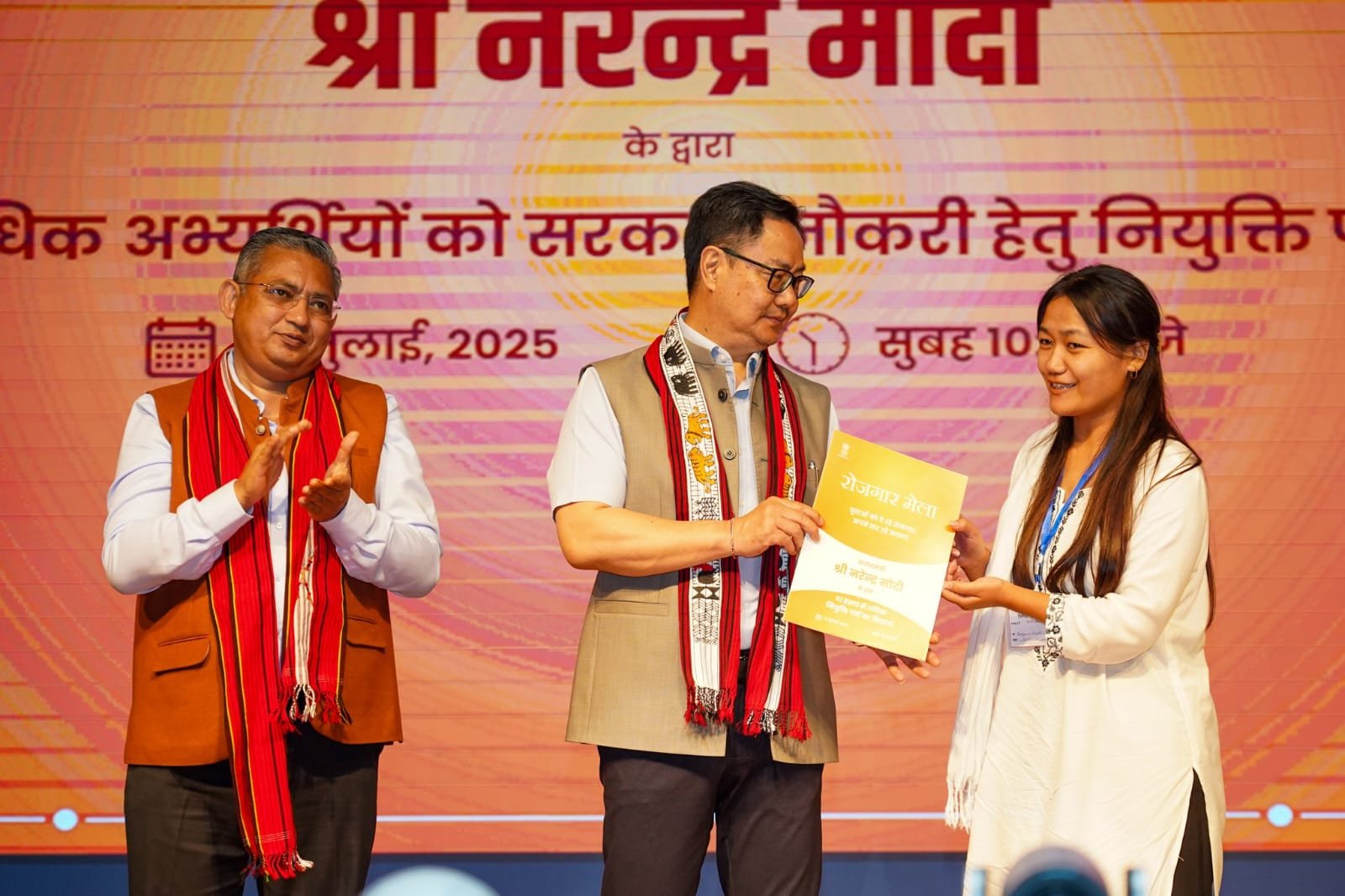 Union Minister Kiren Rijiju on Saturday participated in the Rozgar Mela event held in Dimapur, where he distributed appointment letters to newly recruited candidates under the central government’s employment initiative.
