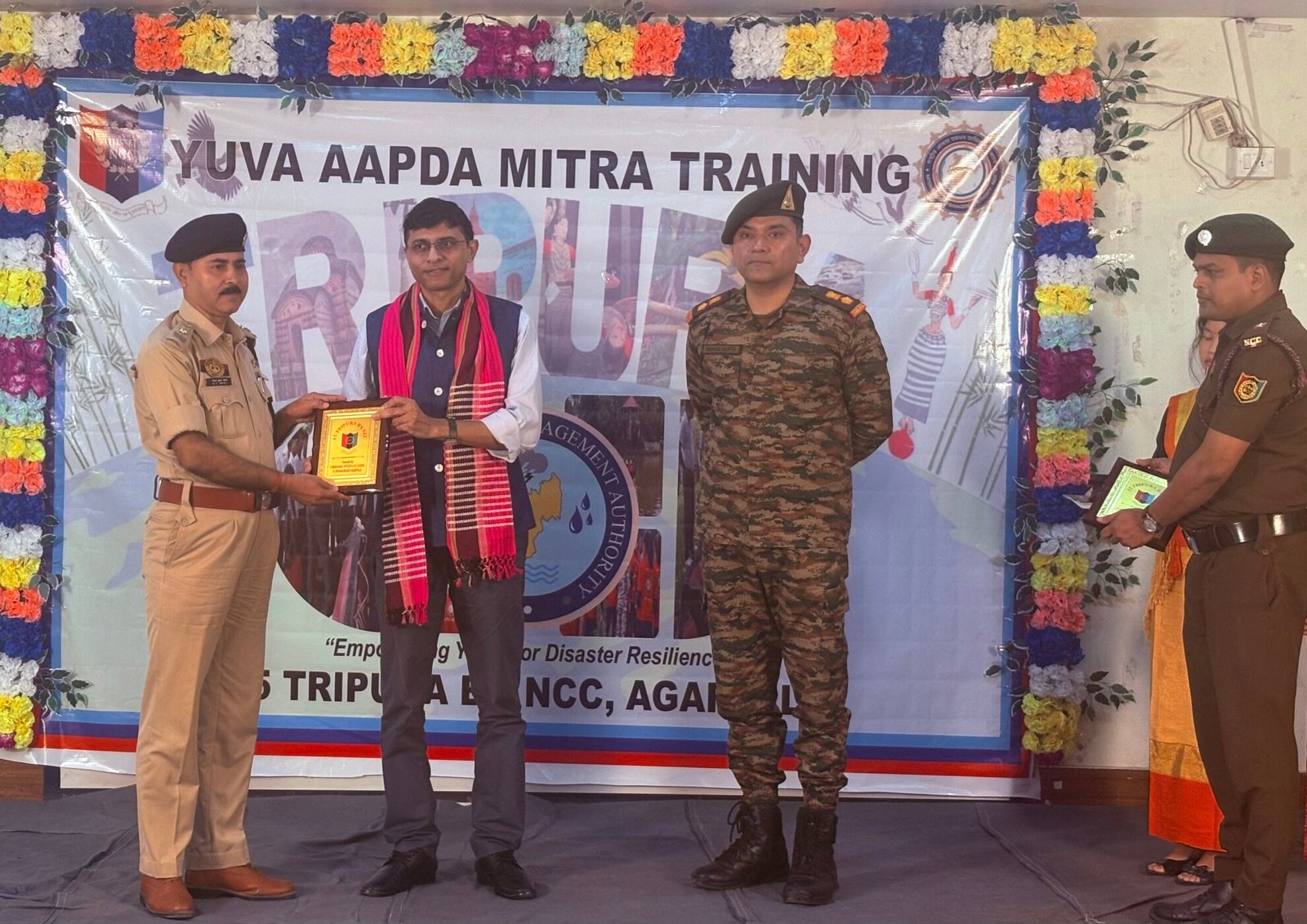 Agartala, November 12, 2025: Tripura’s Chief Electoral Officer (CEO) & Secretary Revenue department Brijesh Pandey, IAS today lauded the National Cadet Corps (NCC) as not merely the eyes and ears of the nation, but as its vital assets. His remarks came during the closing ceremony of the ten-day ‘Yuva Apada Mitra Scheme Training Camp 2025’, held at Shaheed Bhagat Singh Youth Hostel and organized by the 15 Tripura Battalion NCC in collaboration with NDMA, SDMA, and TDMA.