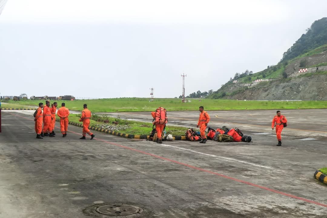 The first sortie carried 23 NDRF personnel equipped with satellite phones, emergency tools, and essential supplies. The team departed from Pakyong towards Chaten to support ongoing rescue and relief activities in the region.