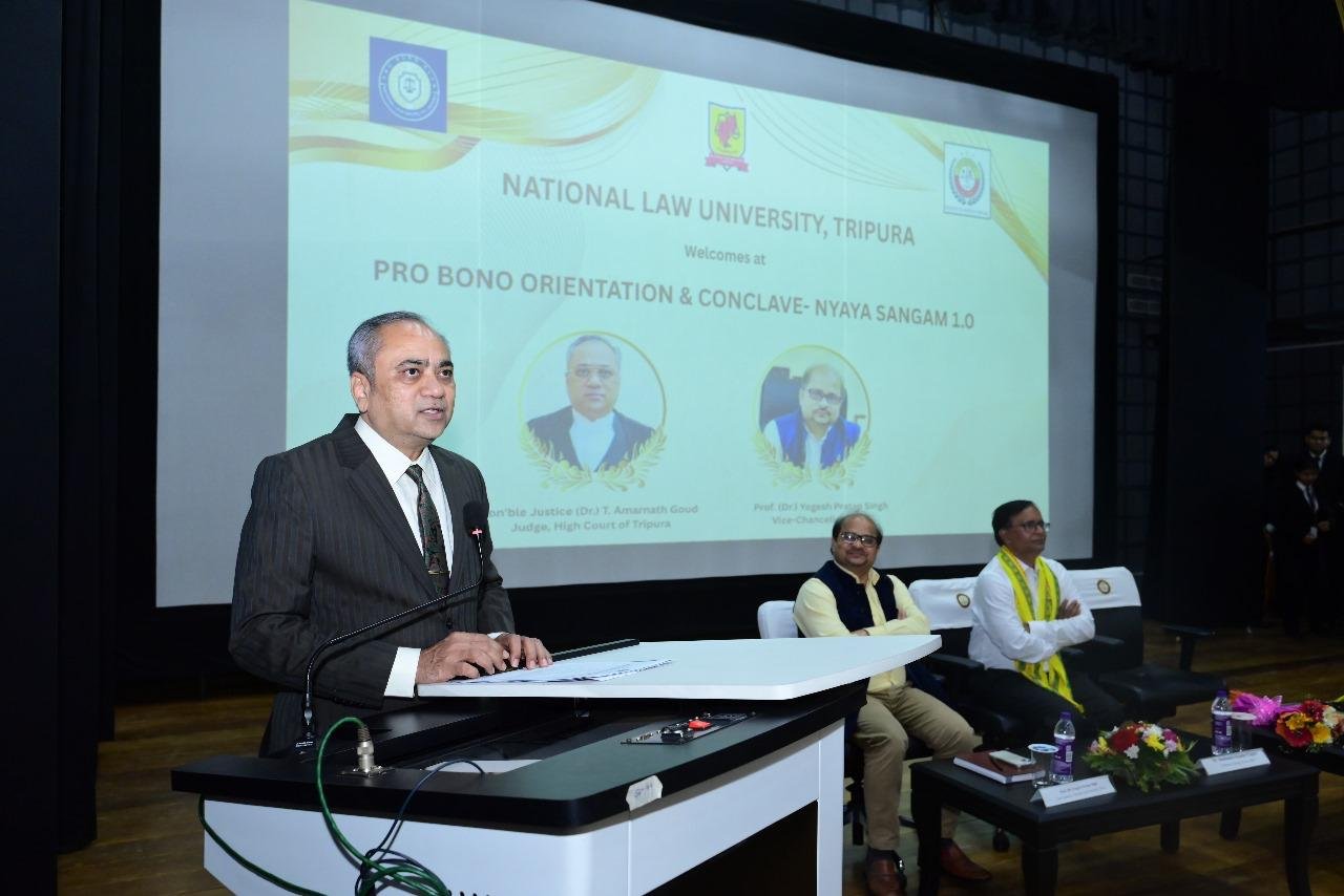 The conclave was inaugurated with inspiring remarks by Dr. Justice Amarnath Goud, who highlighted the significant strides made by the Tripura Judiciary in reducing the backlog of pending cases in both higher and lower courts. He emphasized the critical role of legal voluntarism and accountability of both the Bar and the Bench in strengthening the justice delivery system.