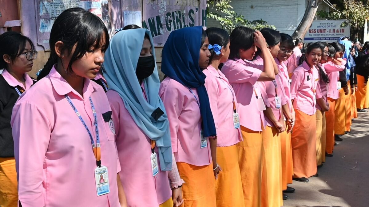 On Children’s Day, students across Manipur took to the streets in protest, demanding the immediate release of six individuals from Meitei community—three women and three children—reportedly abducted by militants in Jiribam. Holding banners and chanting “Release all six abducted by militants,” students called on the government for urgent action to secure the safe return of the abductees.