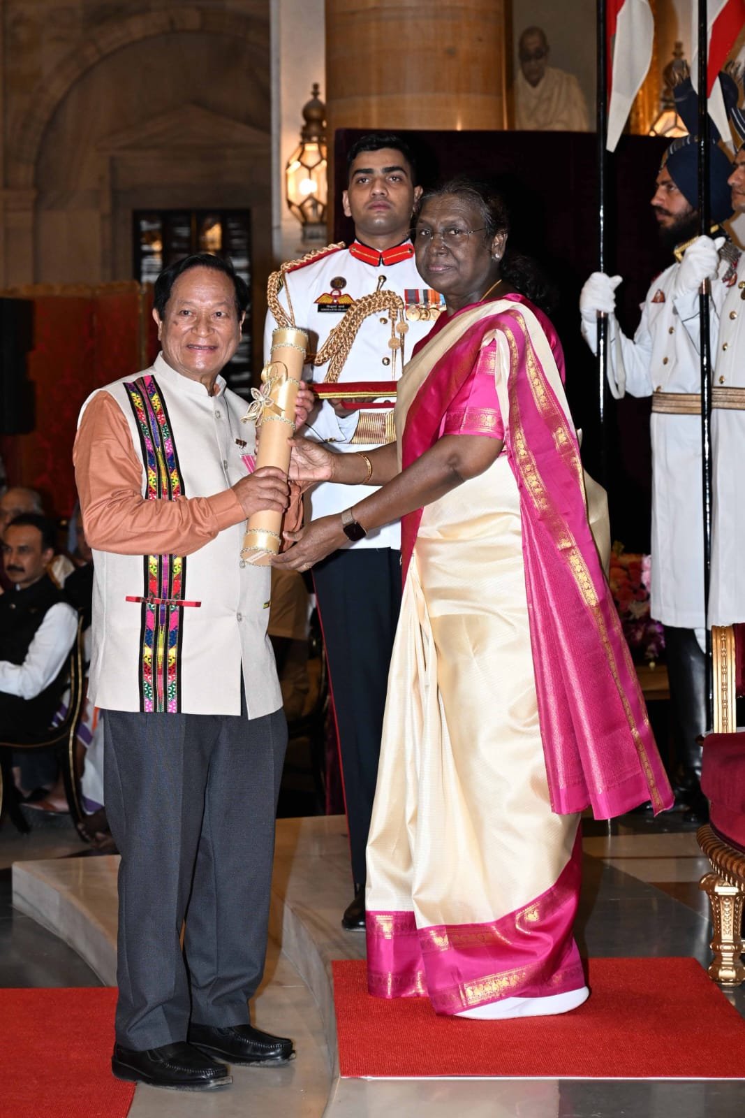 Renthlei Lalrawna received the Padma Shri award from President Droupadi Murmu for his outstanding contributions in the field of Literature and Education.