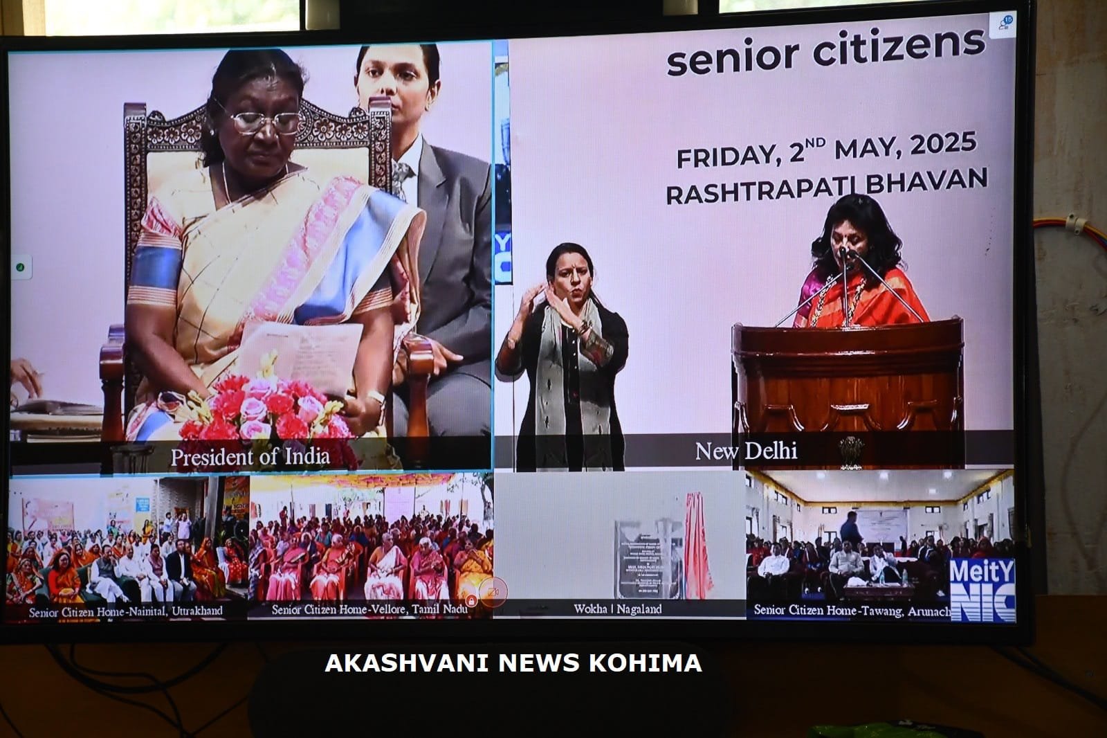Kohima, May 3: President Droupadi Murmu virtually inaugurated the Sevic Senior Citizens Home in Wokha, Nagaland, on May 2, 2025, during a multi-state ceremony held from New Delhi. The inauguration was part of a nationwide initiative launched by the Ministry of Social Justice and Empowerment, covering five states including Tamil Nadu, Andhra Pradesh, Arunachal Pradesh, and Uttarakhand.
