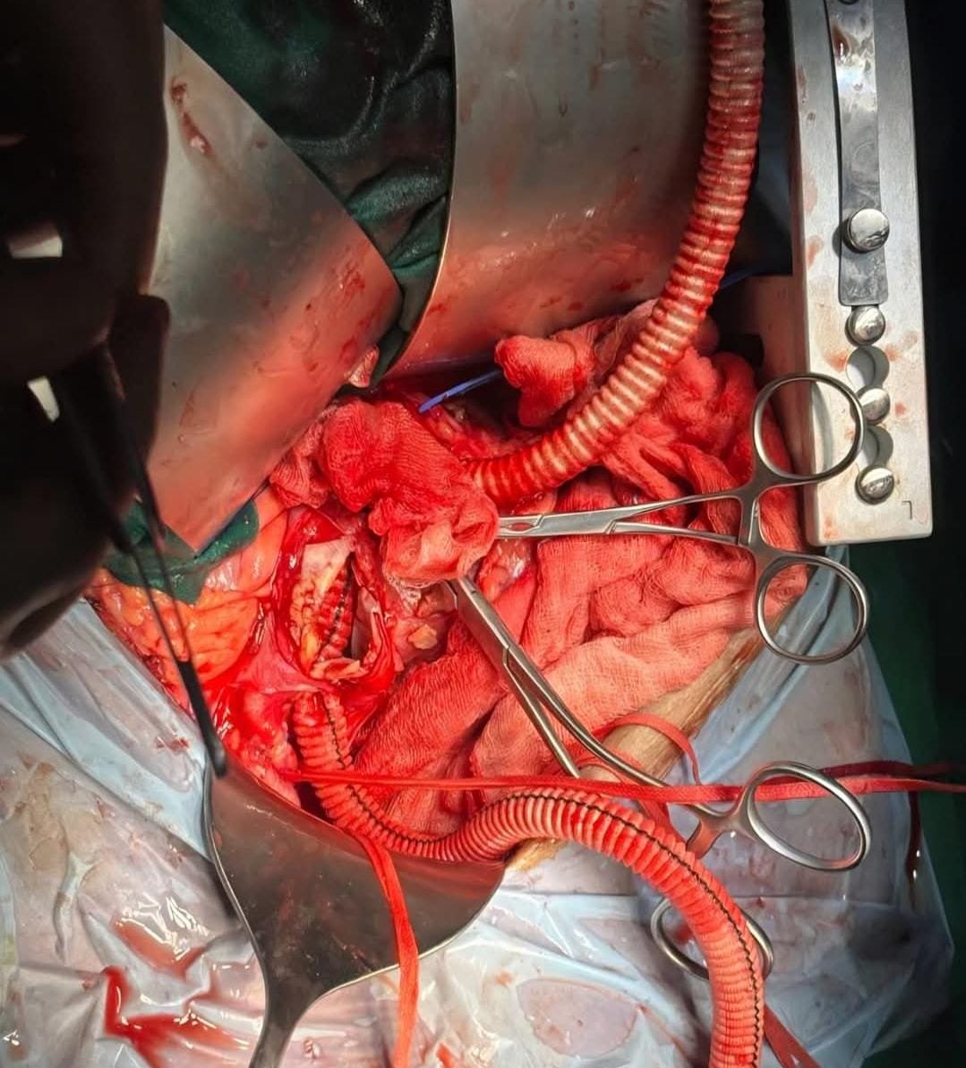 The surgery was conducted on March 15, 2026, on a 79-year-old male patient who was admitted with a life-threatening condition involving a large bilateral common iliac artery aneurysm with impending rupture.