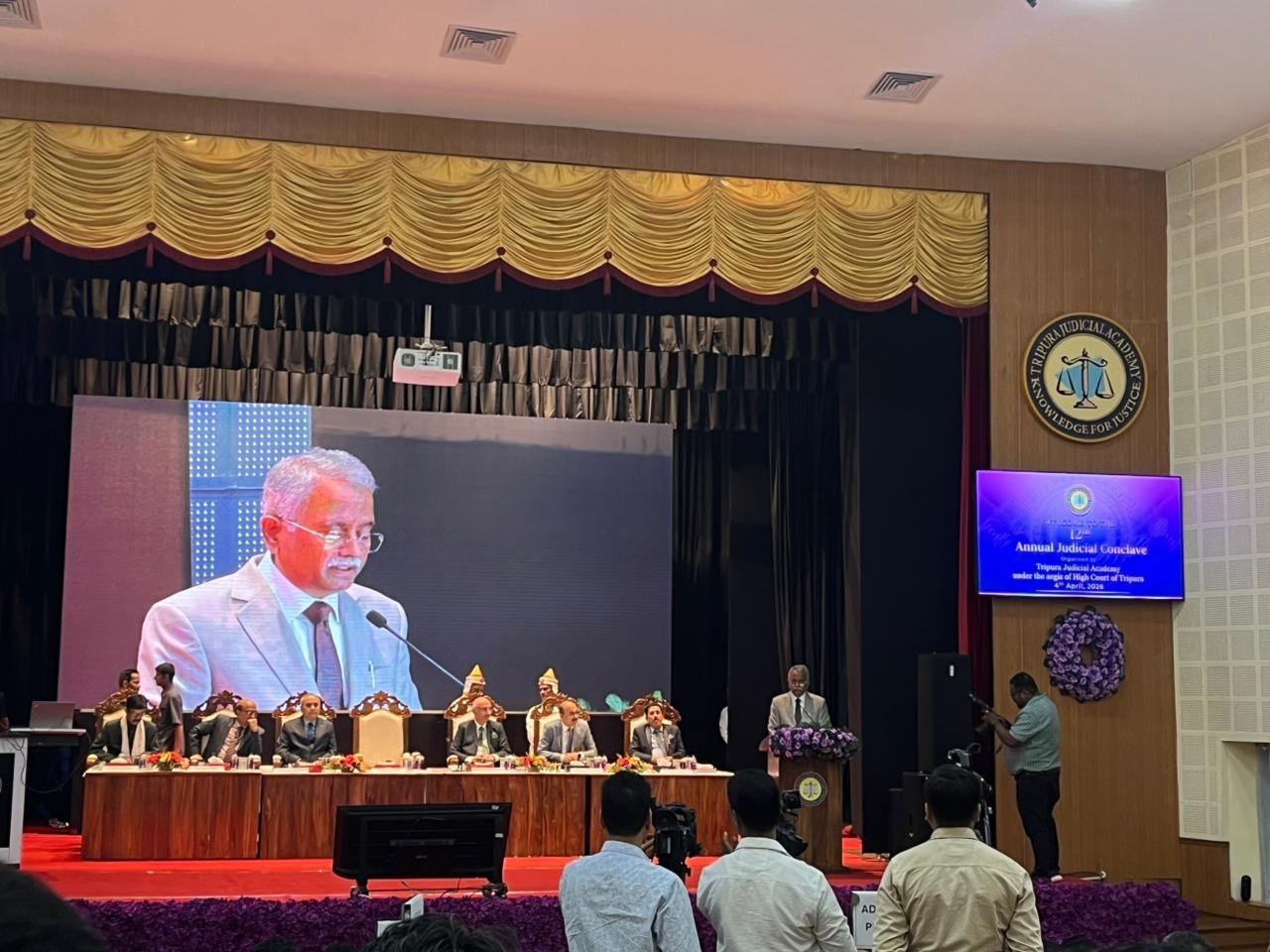 Agartala, April 04, 2026: Supreme Court judge Justice S. Venkatanarayana Bhatti on Saturday described the judiciary as the “steel frame of the edifice of Indian democracy” while urging judicial officers in Tripura to uphold integrity, clarity, and constitutional values. Speaking at the 12th Annual Judicial Conclave, he reflected on his early career in district courts, noting that principles of procedure and substantive law continue to guide him at the apex court.