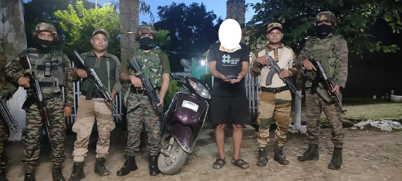 Another arrest was made in Imphal East, where security forces nabbed an active People’s Liberation Army (PLA) cadre, Kangujam Nongmaikhomba Meitei (50) of Basikhong. He was allegedly involved in extortion activities targeting the public, local businesses, schools, and colleges in Bishnupur district. A mobile phone with two SIM cards and a purple-coloured Activa scooter (registration no. MN 01C 3338) were recovered from him.