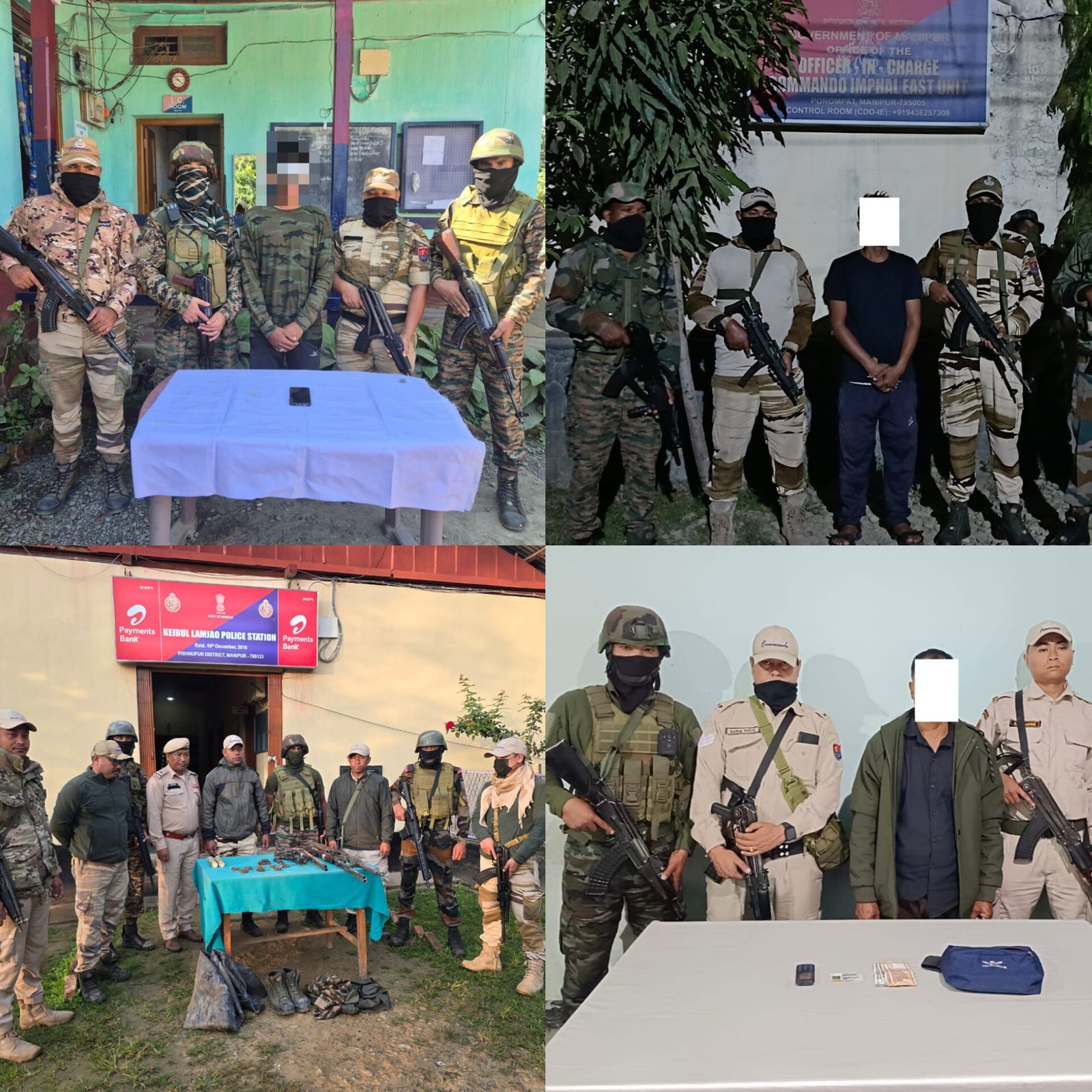 Security Forces have carried out a series of successful counter-insurgency operations across Manipur, leading to significant recoveries of arms and ammunition as well as the arrest of two active cadres belonging to banned underground outfits.