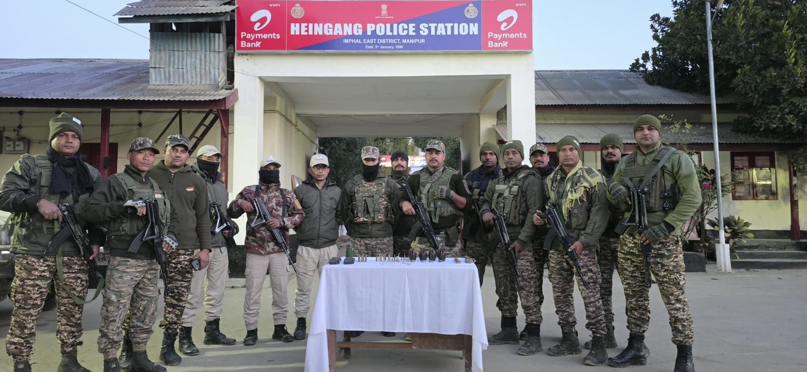 Further operations on January 25 led to the recovery of arms and explosives from the Kakmayai Lamkhai area under Nongpok Sekmai Police Station in Thoubal district. The cache included a double-barrel breech-loading gun (DBBL), four high-explosive grenades, six IEDs, two magazines of different arms, 138 rounds of ammunition of various calibres, three 12-bore cartridges and five detonators.