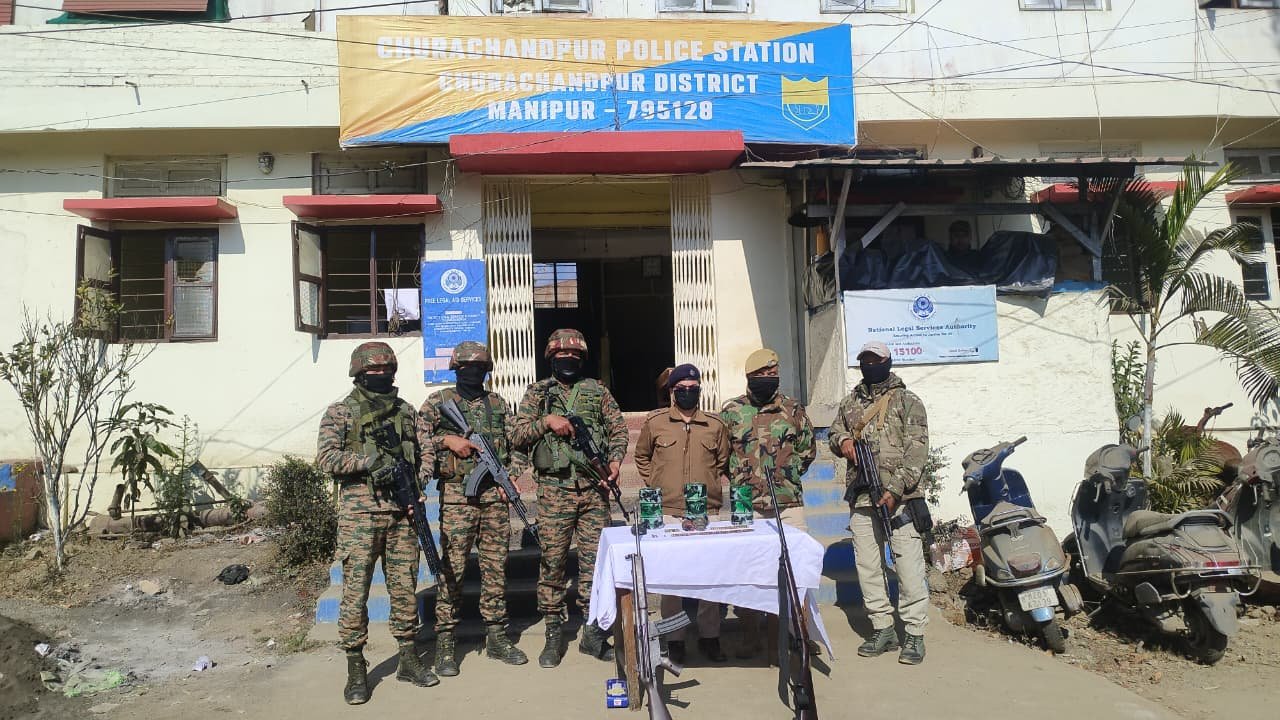 On January 25, a major recovery was made from the Terakhongshang forest area of Teijang village under Churachandpur Police Station. The seized items included an M-A II MK II rifle with magazine, an AK magazine, 66 rounds of ammunition of different calibres, two high-explosive hand grenades, three improvised explosive devices (IEDs) weighing about 3.5 kg each, and a muzzle-loading barrel gun.