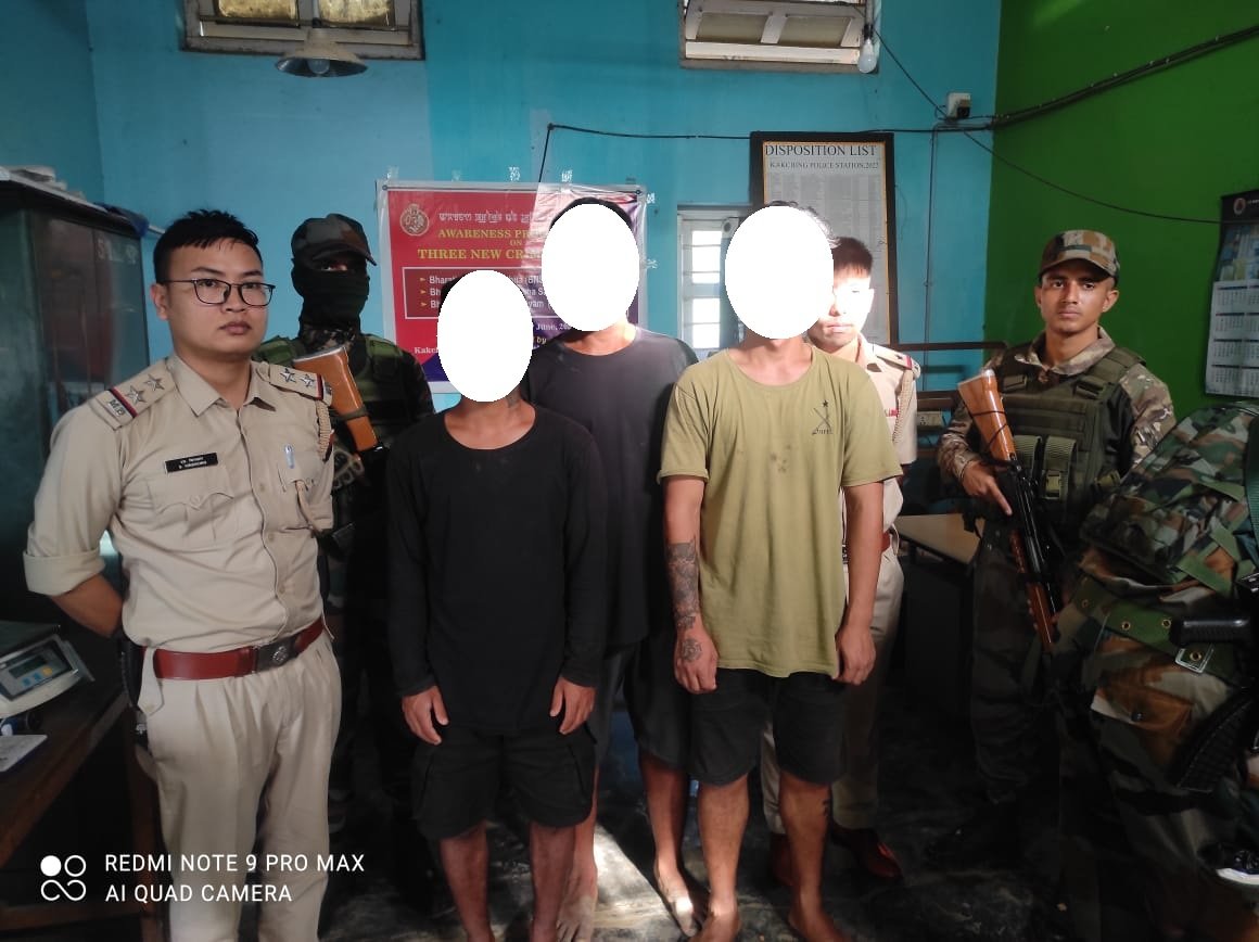 In Tengnoupal district, three active cadres of the banned Kangleipak Communist Party (KCP) were apprehended near Border Pillar 79 at Pangal Basti on Sunday. The arrested individuals have been identified as Khumanthem Umakanta Singh (36), Pukhrambam Naoton Singh (22), and Soibam Bargil Meitei (23).