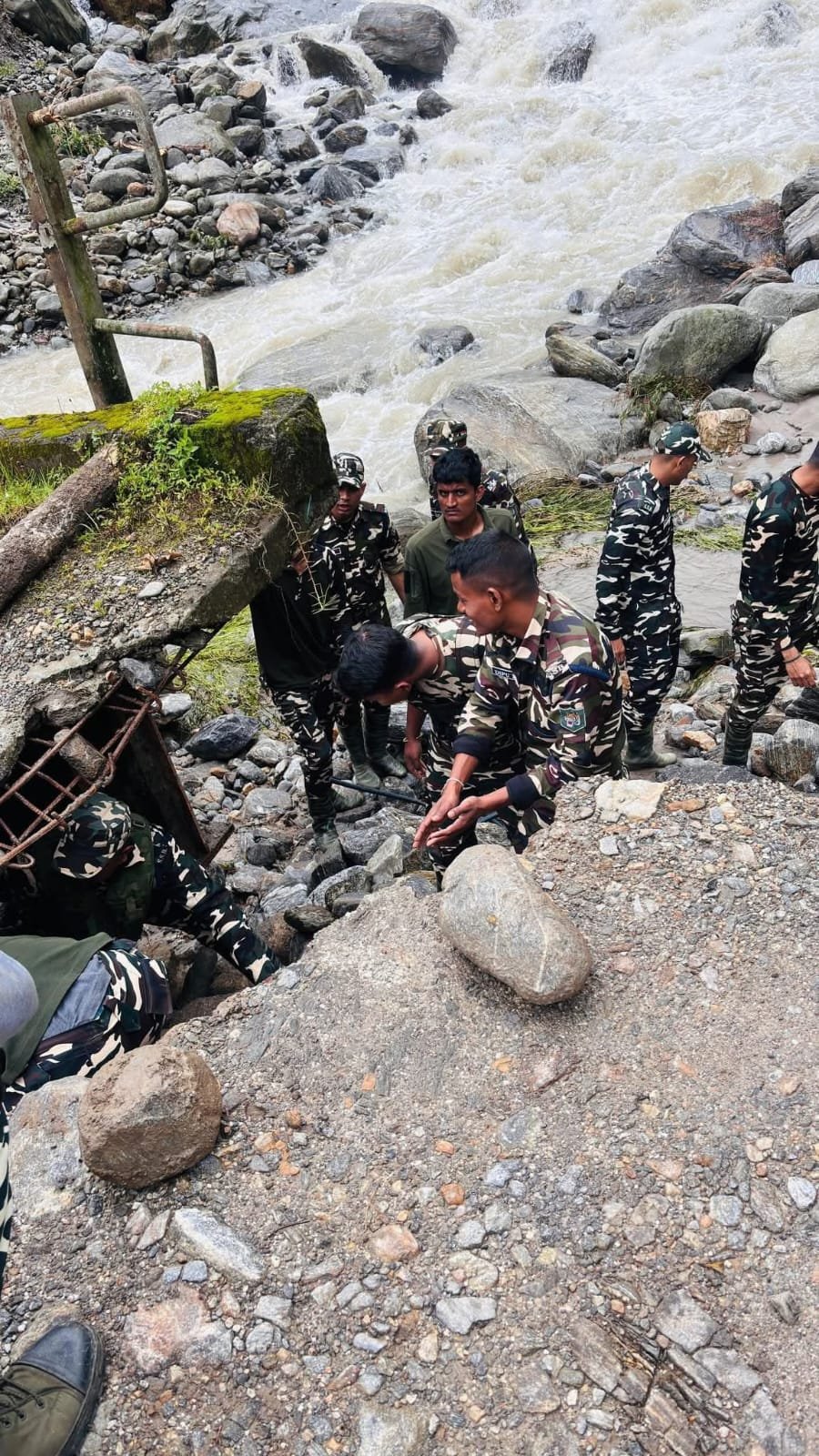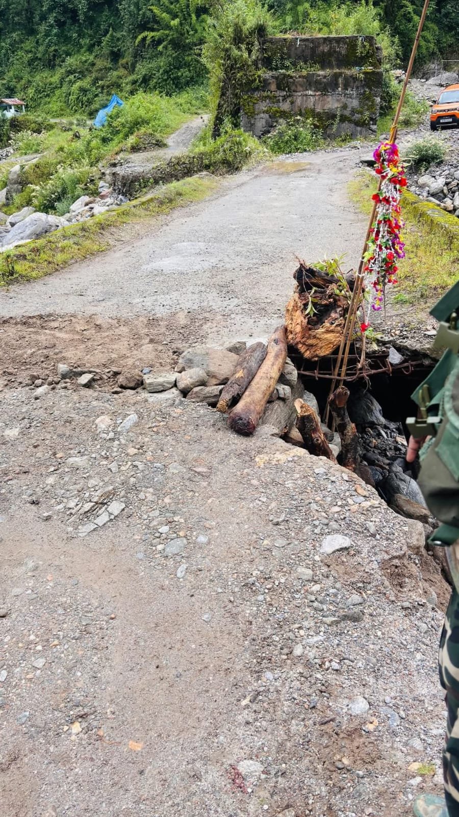 Jawans of the 72nd Battalion, Sashastra Seema Bal (SSB), Yuksam, who were returning from firing practice, noticed the damage and immediately assessed the situation. Acting swiftly, they carried out temporary repairs to the bridge, successfully restoring traffic flow.