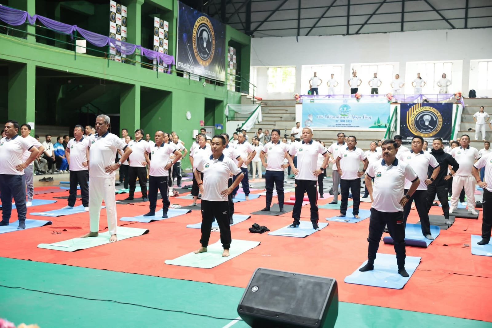 Sikkim Chief Minister Prem Singh Tamang, along with Governor Om Prakash Mathur, Cabinet ministers, MPs, MLAs, top officials, and students, participated in the 11th International Day of Yoga celebrations held at the indoor hall of Paljor Stadium on Saturday.
