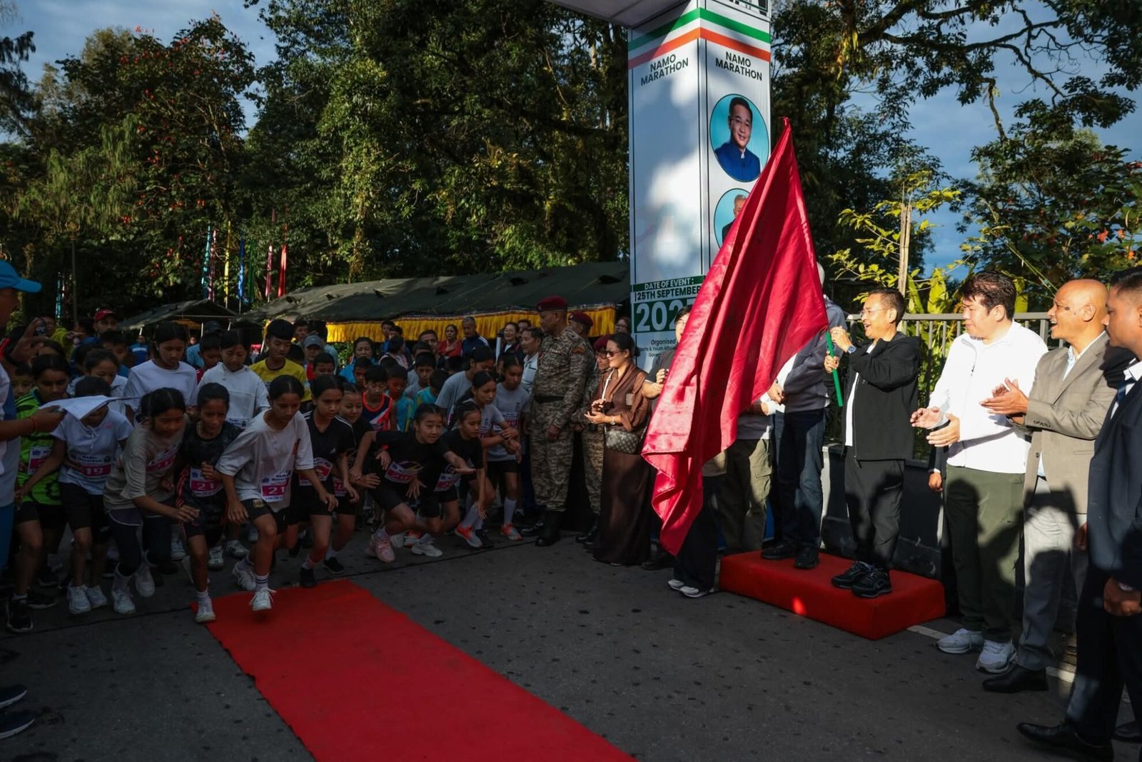 Sikkim Chief Minister Prem Singh Tamang flagged off the NaMo Marathon at Ridge Park on Thursday. The event, organized by the Sports and Youth Affairs Department (SYAD), is part of the Sewa Pakhwada observance and aims to promote physical fitness and community participation, in line with Prime Minister Narendra Modi’s “Fit India, Healthy India” initiative.