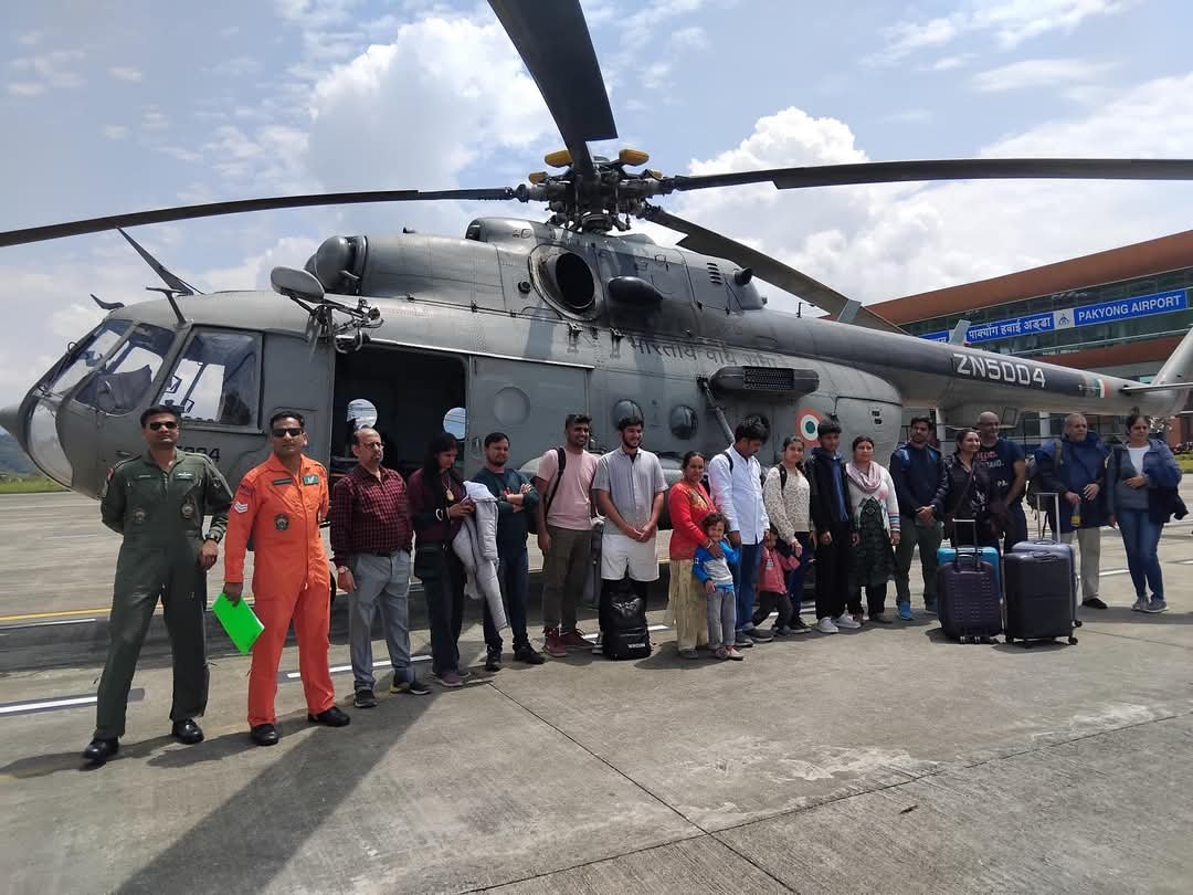 An MI-17 helicopter transported 20 tourists, including two foreign nationals, ensuring their safe evacuation. To facilitate onward travel, Sikkim Nationalised Transport (SNT) buses were arranged to take the rescued tourists to Gangtok.