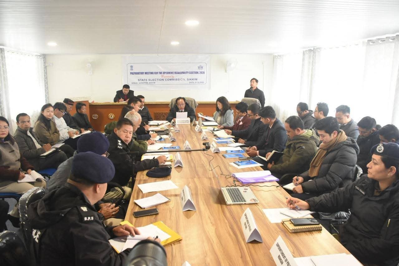 Gangtok, Feb 7 : The State Election Commission, Sikkim, on Saturday held a preparatory meeting at the Fisheries Department Conference Hall near Paljor Stadium to assess readiness for the upcoming Municipal Elections 2026. The meeting was chaired by State Election Commissioner K.C. Lepcha.