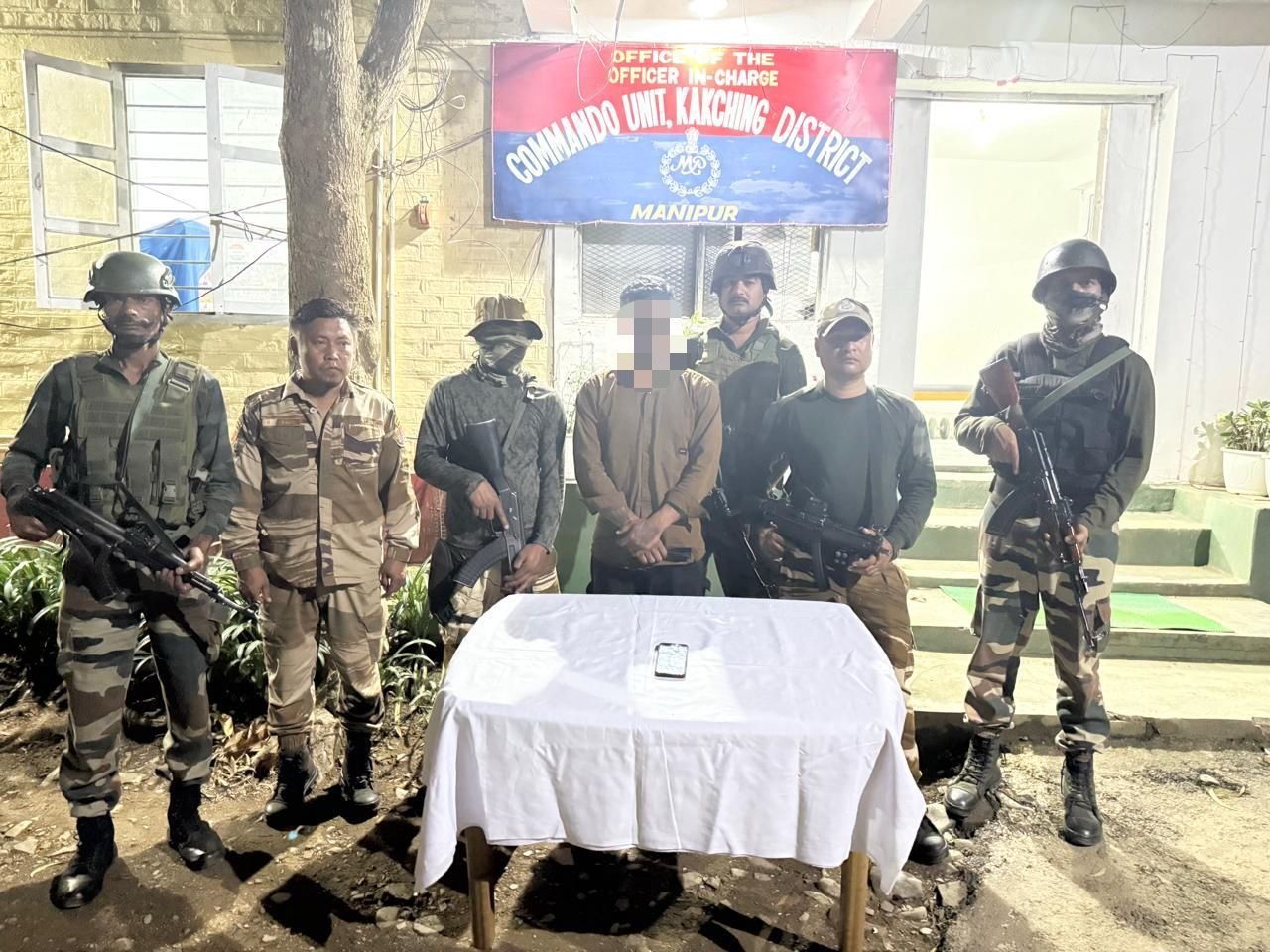 In Kakching district’s Wabagai area under Hiyanglam Police Station, an active cadre of PREPAK (PRO), also trained in Myanmar, was arrested. He is from Hiyanglam Awang Leikai, and one mobile phone was recovered from his possession.