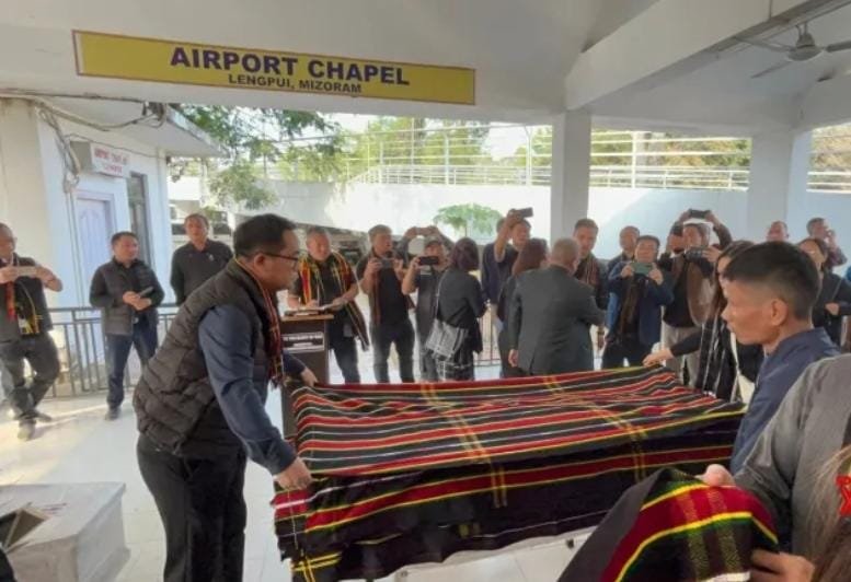 Valte’s body entered Manipur through the Tuivai River border between Mizoram and Manipur before proceeding towards his native town. The funeral service of the 62-year-old legislator is likely to be held on Tuesday. His mortal remains will be kept at his residence in Dorcas Veng later this evening to allow the public to pay their last respects.