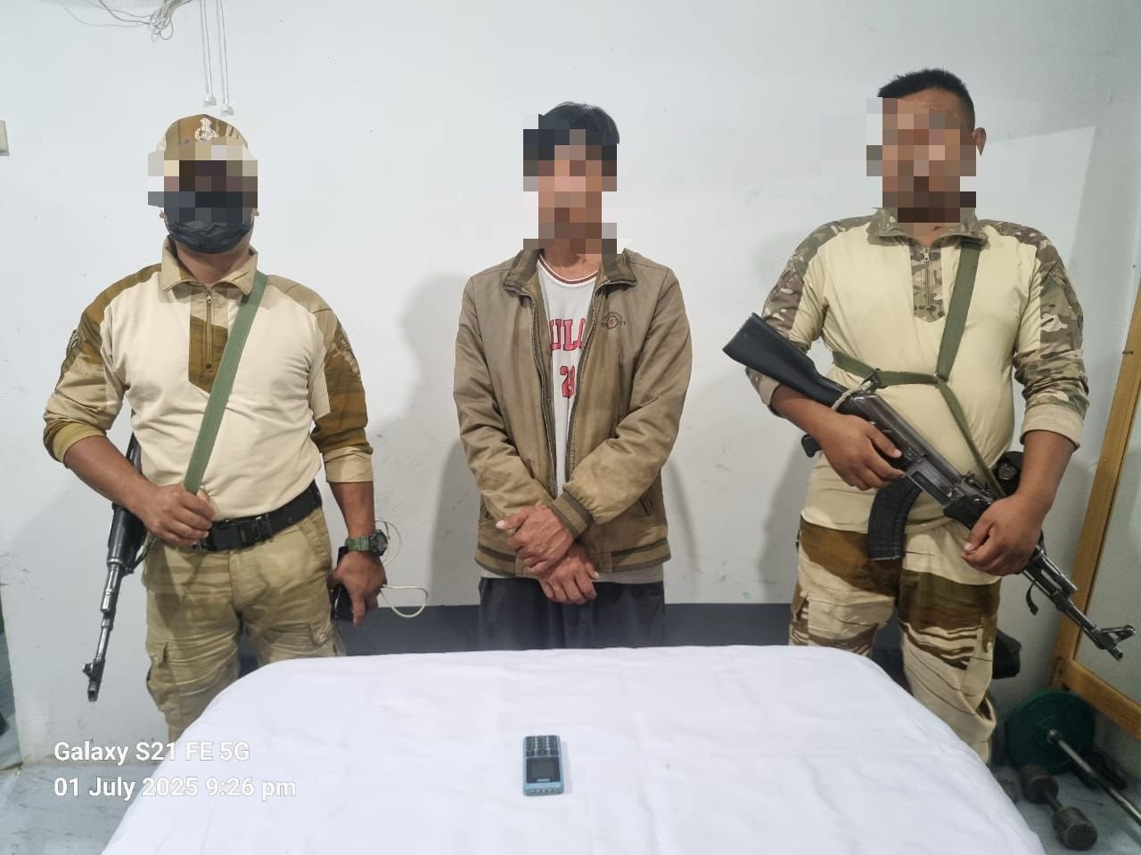 In a separate operation on the same day, security forces nabbed another KCP (PWG) operative, Oinam Tomba Singh alias Herojit (57), from Sekmaijin Maning Leikai under Hiyanglam Police Station in Kakching district. A resident of Tumukhong Awang Leikai in Imphal East, he is reportedly involved in several extortion cases targeting fuel pump owners in Kakching and Thoubal districts. A keypad mobile phone was recovered from him.
