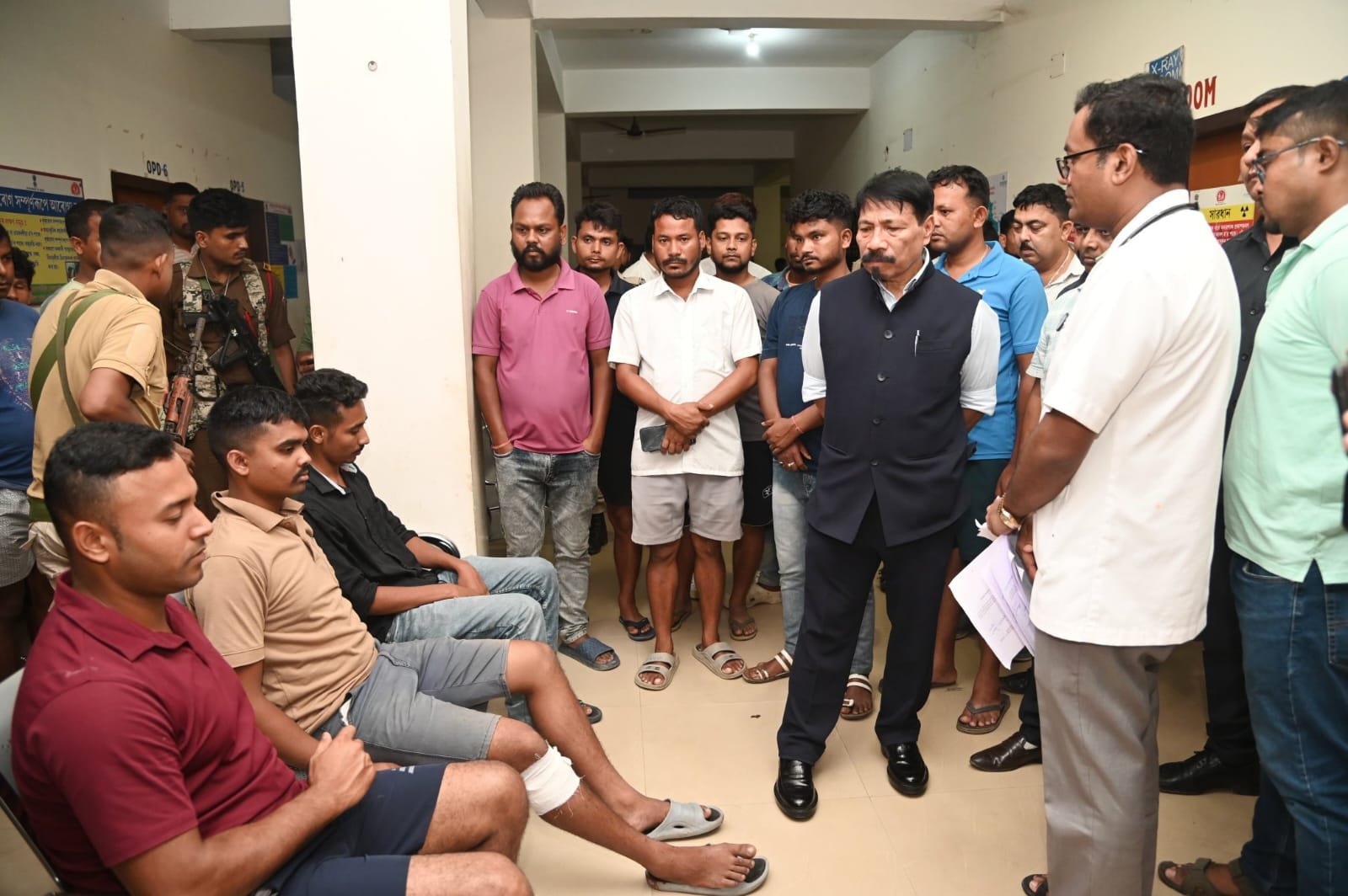 Three personnel of the Assam Police sustained injuries in a suspected grenade blast at Sapjuri in Bokakhat. Assam Minister Atul Bora visited the injured police personnel at Swahid Kamala Miri Civil Hospital, where they are currently undergoing treatment.