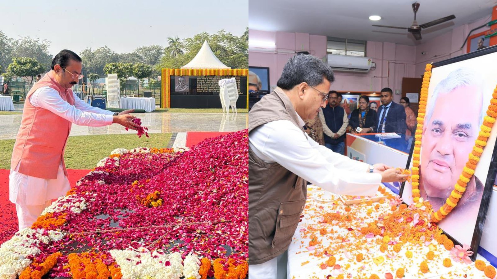 After offering his respects, Bhattacharjee said he felt honoured to pay tribute to Atal Bihari Vajpayee on this special occasion. “I consider myself fortunate to bow before the memorial of Atalji today. His ideals, unwavering patriotism and strong leadership will continue to inspire the people of the country for generations to come,” he said.