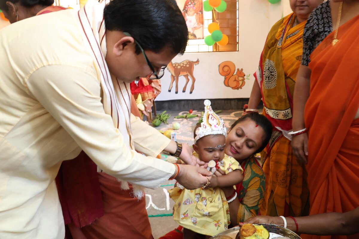 As part of the program, Minister Roy, along with other dignitaries, distributed nutritional kits to five pregnant women and five malnourished girls. They also participated in a symbolic feeding ceremony, offering traditional food to a pregnant woman and performing an Annaprashan ritual for a baby, marking the child’s first intake of solid food.