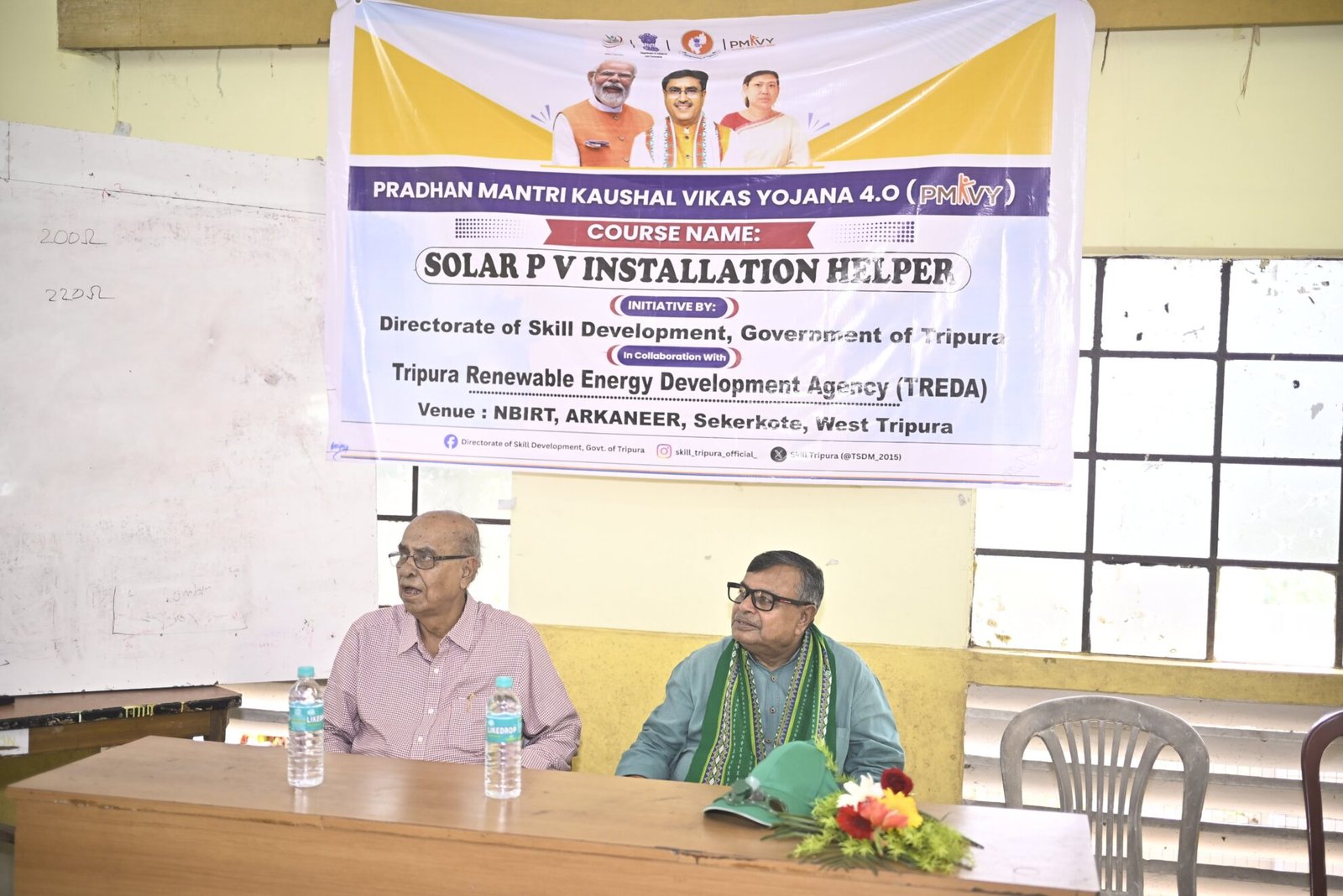 During his visit to NBIRT “Arkaneer”, the Minister interacted with trainees enrolled in the Solar PV Installation Helper training programme being conducted under Tripura Renewable Energy Development Agency and the state Skill Development initiative. He took keen interest in understanding the methodology adopted by the institute for imparting practical solar photovoltaic installation training to participants.