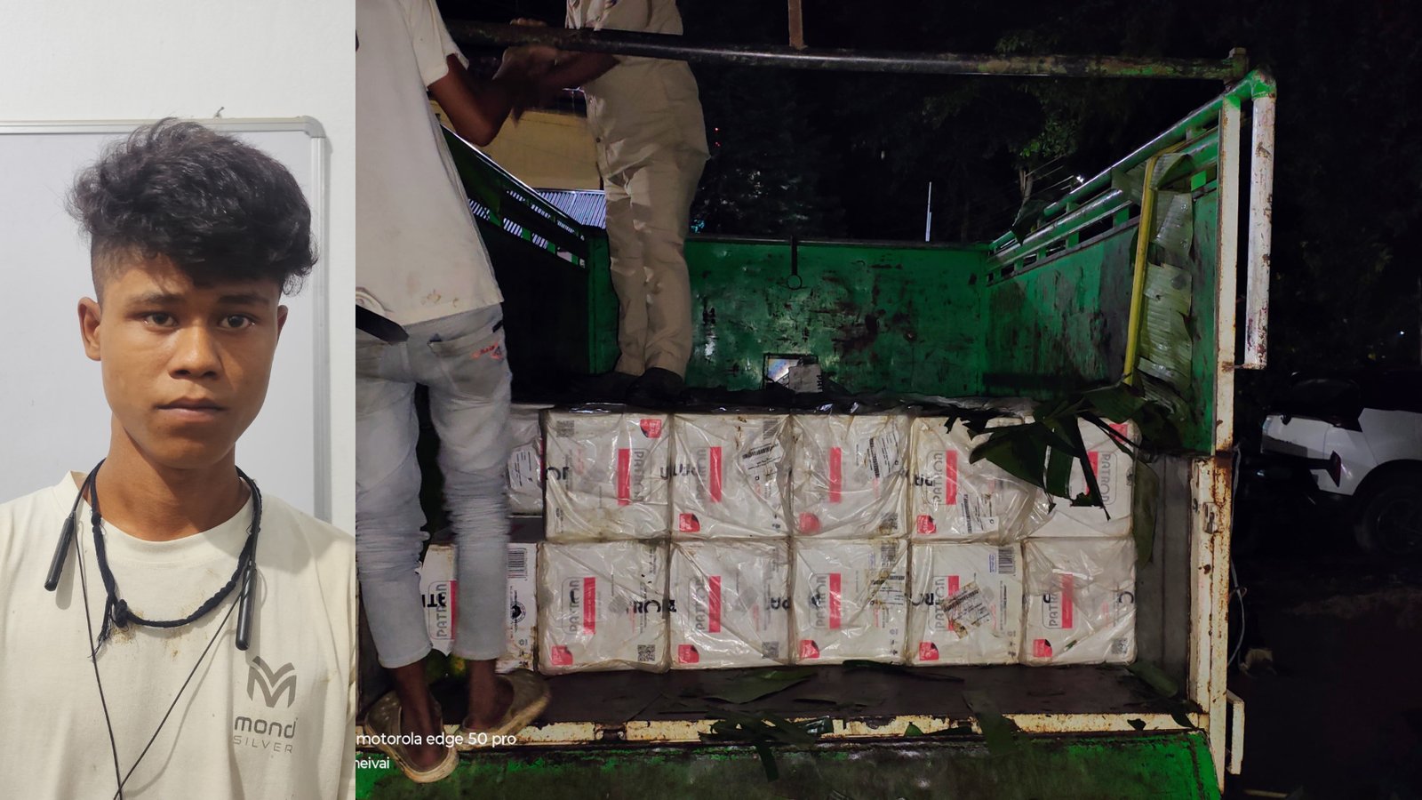 During the operation, officers recovered a massive cache of Burmese-made cigarettes concealed inside the vehicle. One youth was arrested at the scene and taken into custody. Initial estimates suggest the seized consignment is valued at Rs 60–70 lakh.