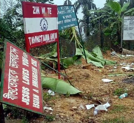 Agartala, January 6, 2026: Tension has escalated in Tripura’s Monpui area under Unakoti district after unidentified miscreants vandalized property, felling trees in local gardens and defacing the signboard of the Mizo Convention.