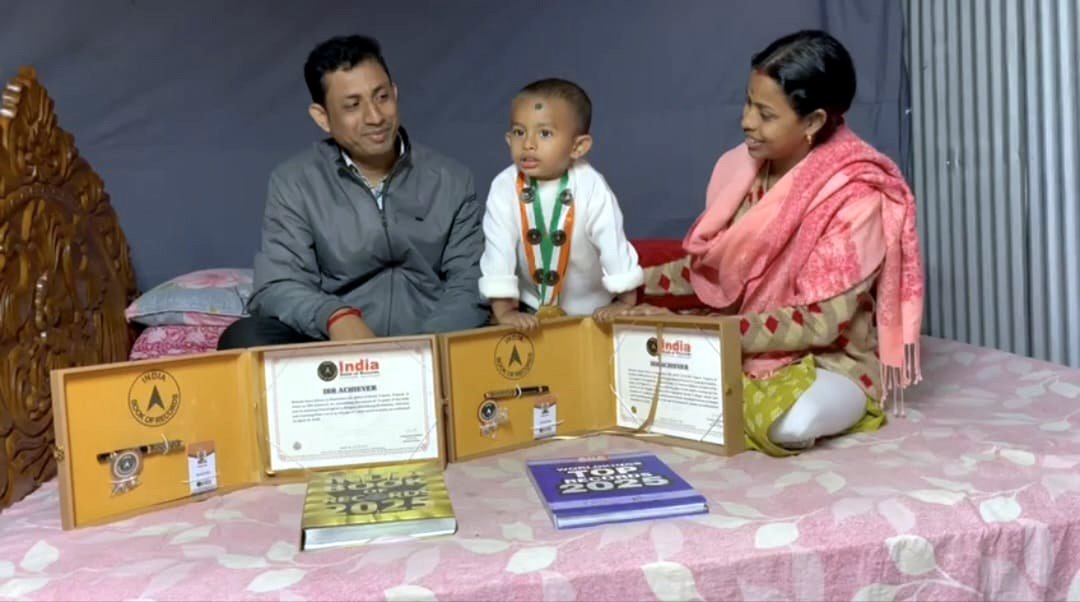 Shriyansh is the only child of Biswajit Shastri and Swapna Das, residents of Subhash Palli in Dharmanagar’s Chandrapur Ward No. 5. His father shared that the boy’s talent was evident as early as 13 months. “He could identify and recite these things effortlessly. We applied to the India Book of Records in April 2025, when he was 18 months old, and received the medal and certificate later that month,” Biswajit recalled.