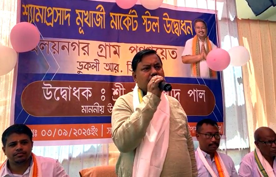 Agartala, September 3, 2025: Tripura Legislative Assembly’s Deputy Speaker and Surjyamaninagar MLA Ram Prasad Paul on Wednesday inaugurated 16 newly built stalls along the Ramthakur Ashram CC Road near Moloynagar Gram Panchayat Bypass and Nagicherra Bypass, in a move aimed at creating livelihood opportunities for the unemployed.