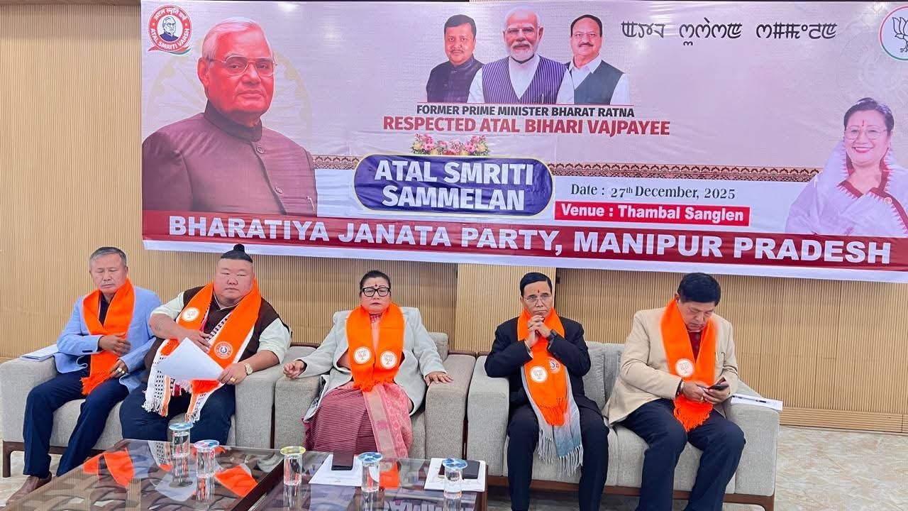 Along attended the Atal Smriti Sammelan organized by the BJP Manipur unit at its headquarters in Thambal Sanglen, Imphal, where he met several legislators and party functionaries. In a post on X, he said, “Glad to attend the Atal Smriti Sammelan organised by BJP Manipur Pradesh at Thambal Sanglen, remembering the enduring vision, values, and statesmanship of Bharat Ratna Atal Bihari Vajpayee ji. His legacy continues to inspire our commitment to nation-first governance.”