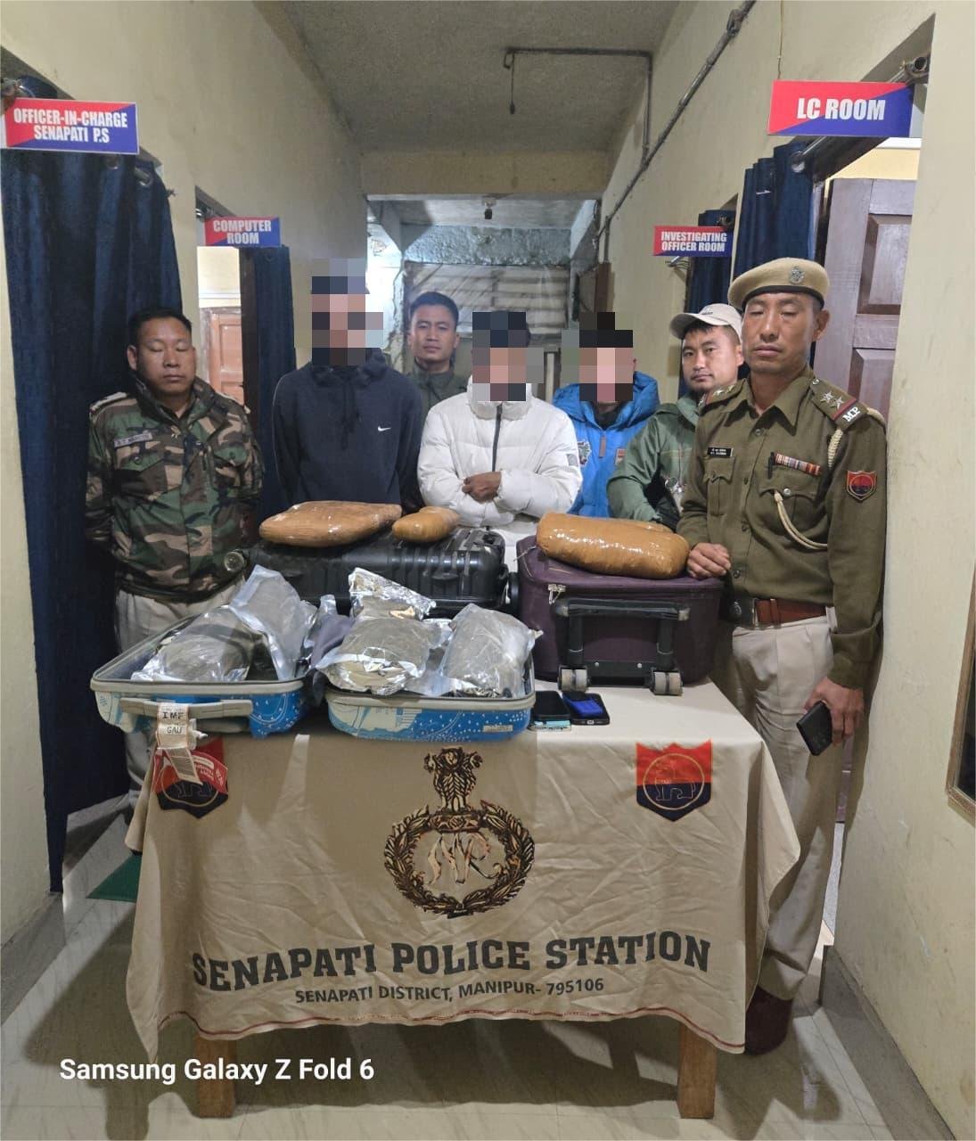 In a continued crackdown on the illegal drug trade, Manipur Police arrested five individuals and seized substantial quantities of contraband substances in two separate operations conducted on October 27 across Senapati and Imphal East districts.