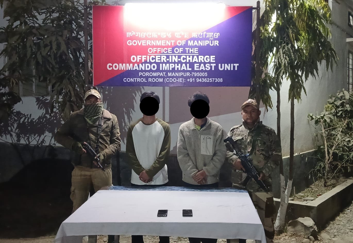 In Imphal East district, Manipur Police arrested two active cadres of the proscribed KCP (MC Progressive) from the Palace Gate area under Porompat police station. The arrested persons were identified as Akhom David Singh alias Atomba (24) of Ngangkha Lawai Maning Leikai and Potshangbam Johnson Singh alias Abungo (25) of Moirang Khuthekpi, both from Bishnupur district. Police said the duo had been residing at Khumbong Khaidem Awang Leikai under Patsoi police station in Imphal West district. Two mobile phones were seized from their possession.
